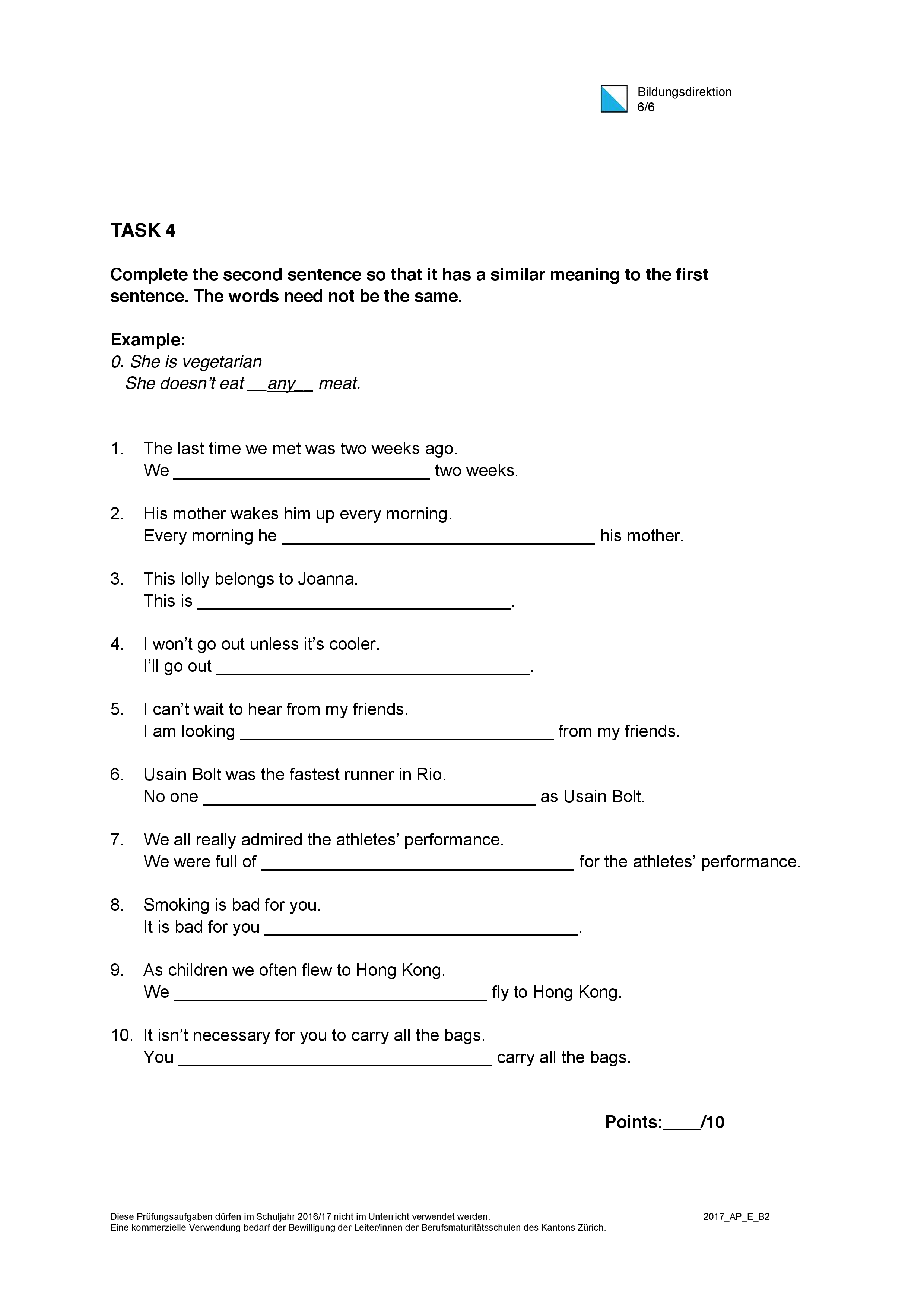 The last time we met was two weeks ago. We ___________________________ two weeks.