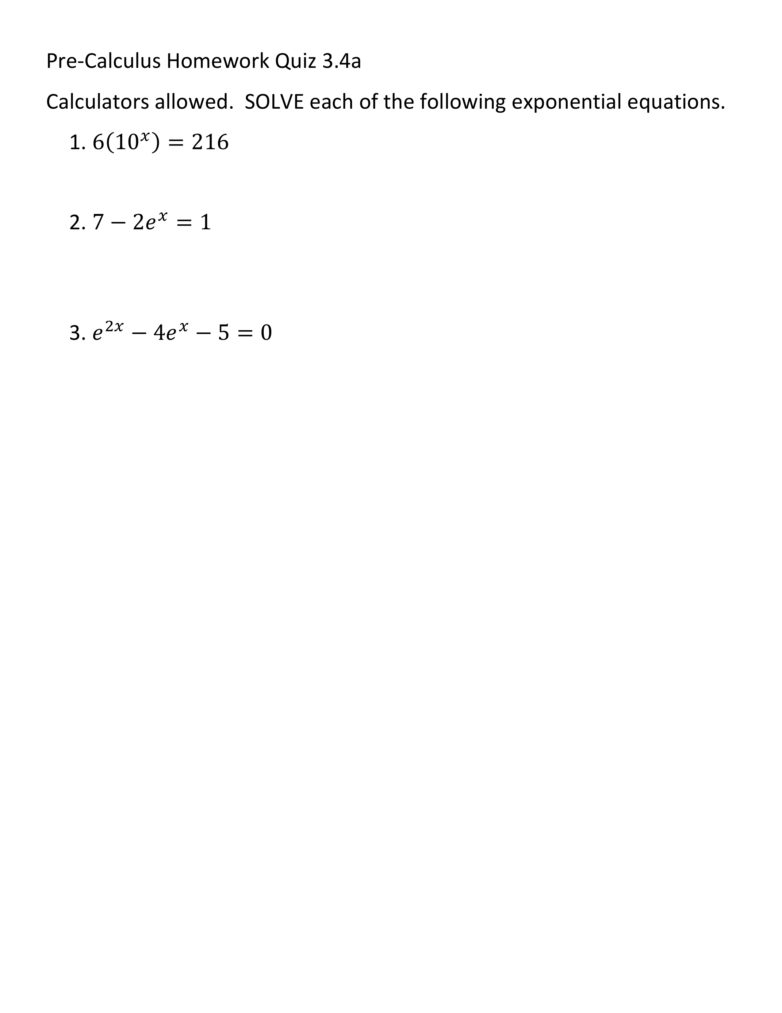 Pre-Calculus 3.4a Homework Check - Solving Exponential Equations