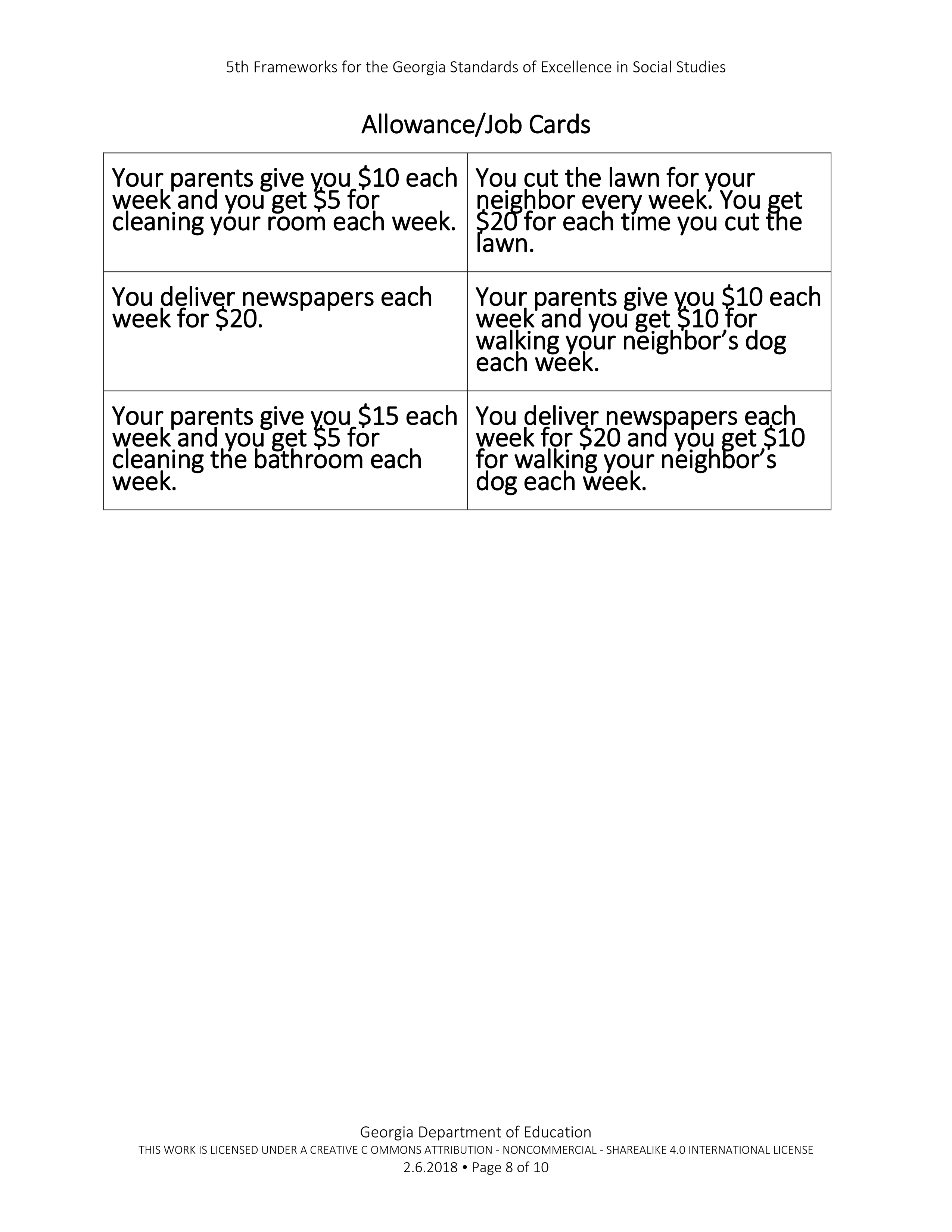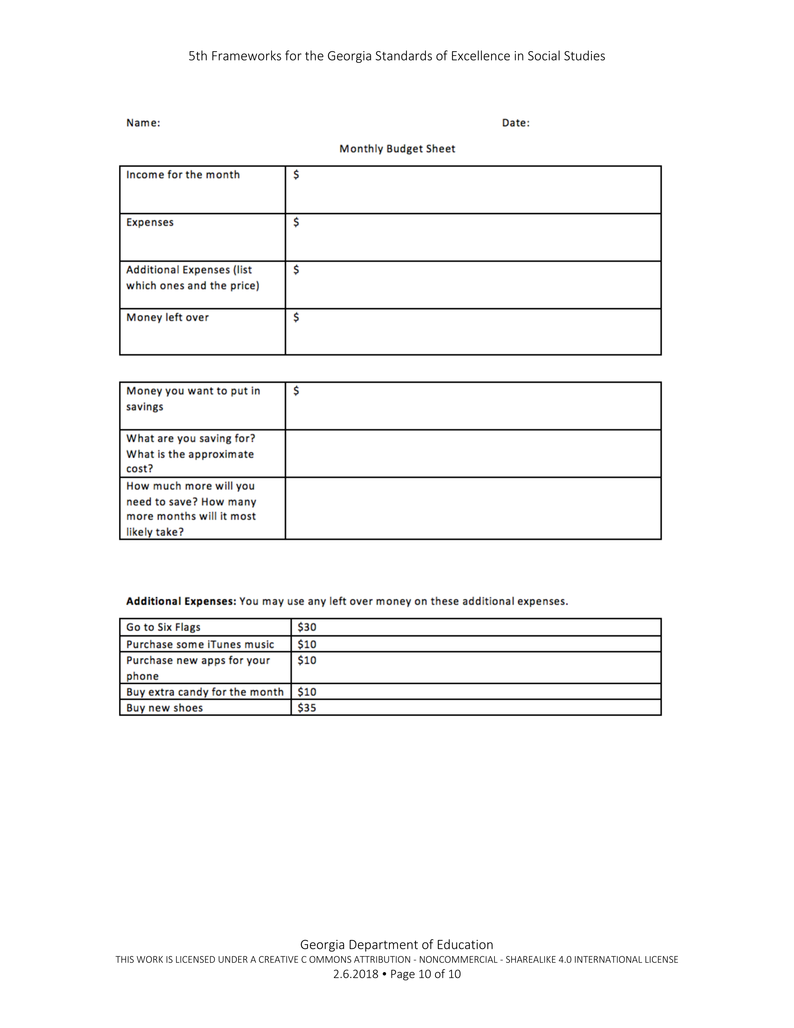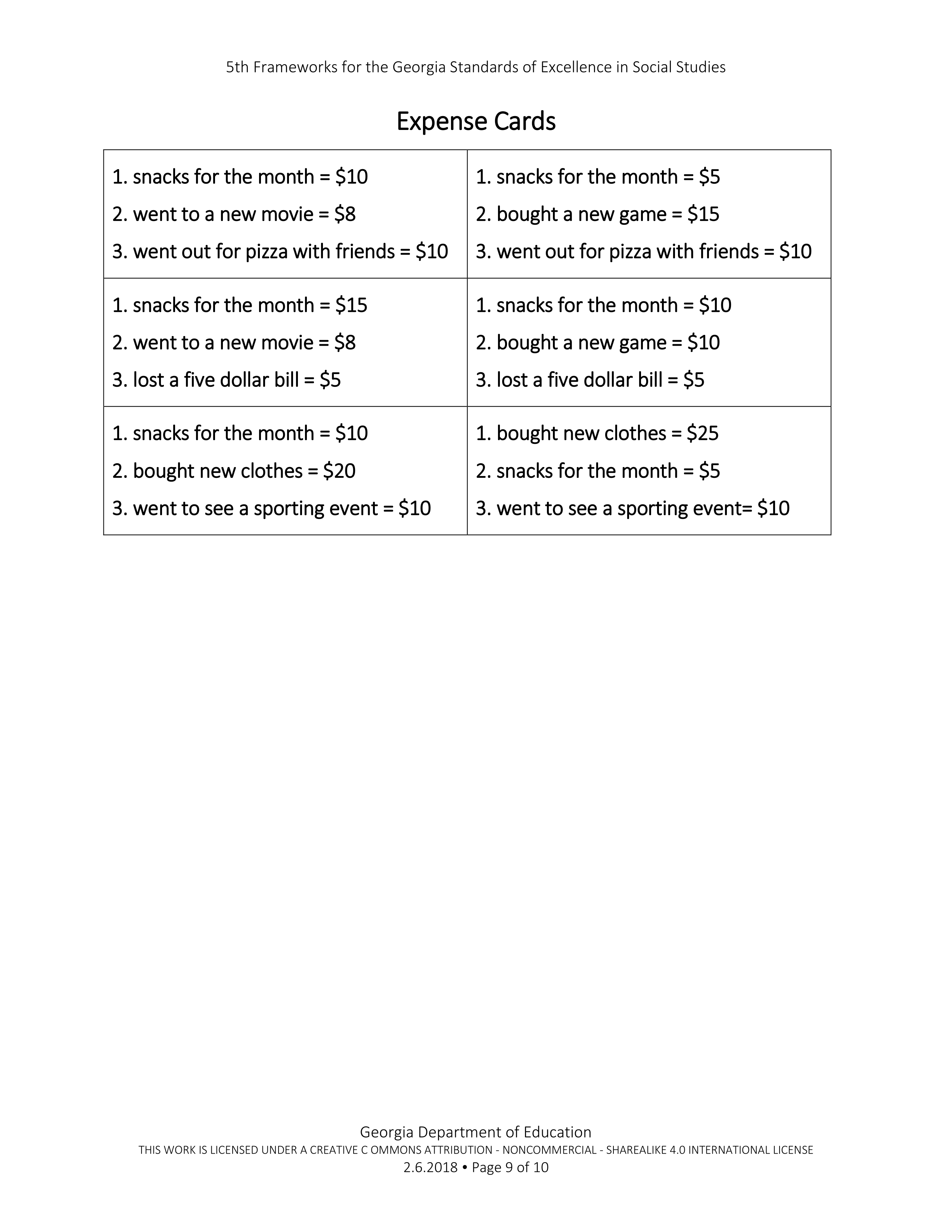 Figure out your monthly income from your allowance/job based on a 4 week month. Find out how much money you have after the expenses that you had on your cards. You can choose to spend any remaining money on the additional expenses or you can save all or part of the remaining money.