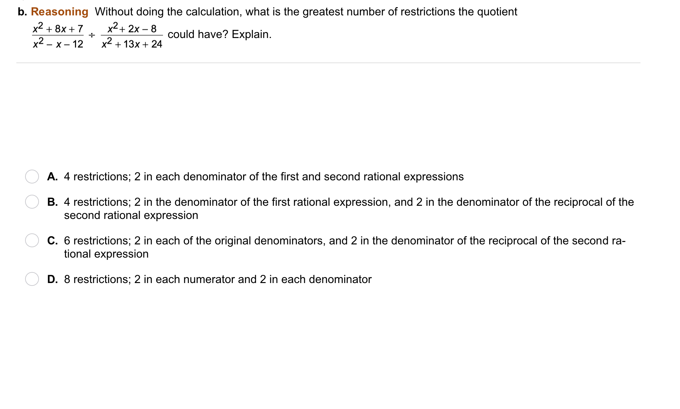 Review Lesson 8-3: Categorize the vertical asymptotes and holes in the left column based on which function's graph they describe.