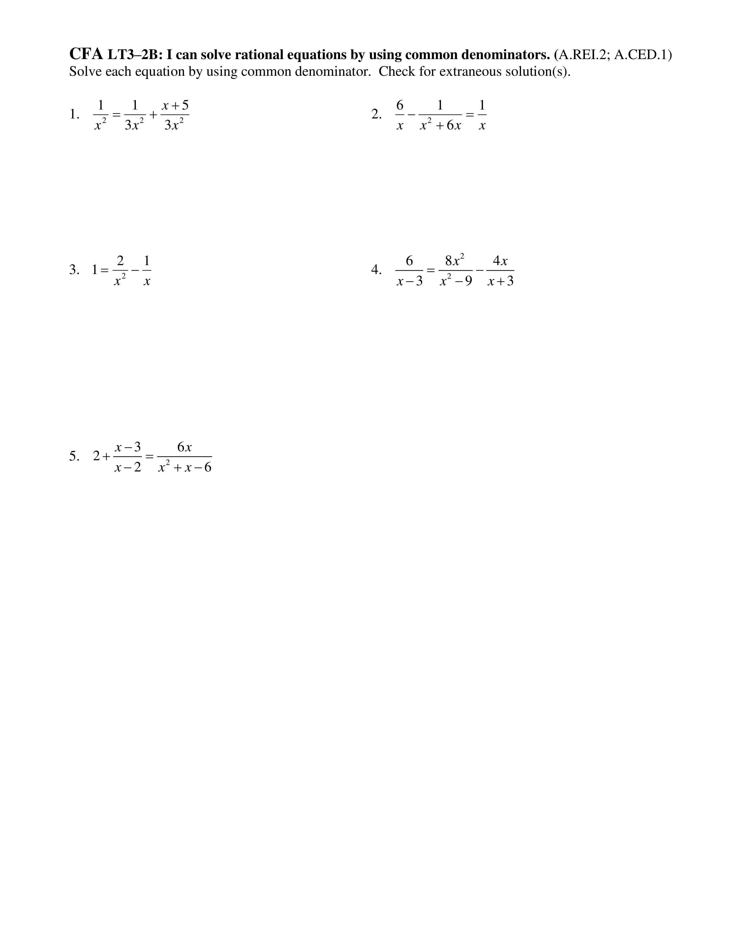 Solve for x by using the common denominator, check for extraneous solutions.