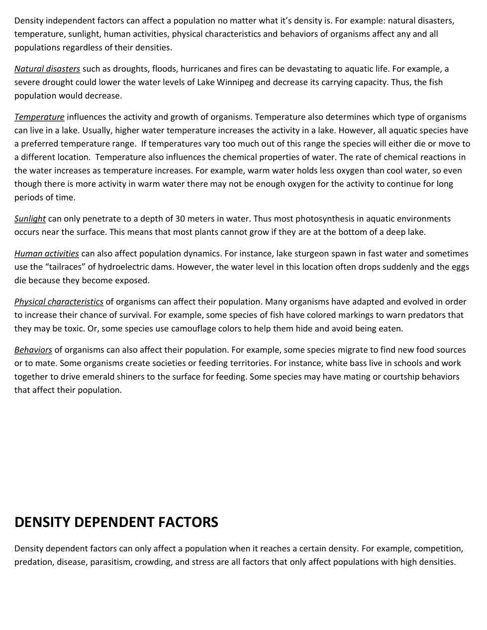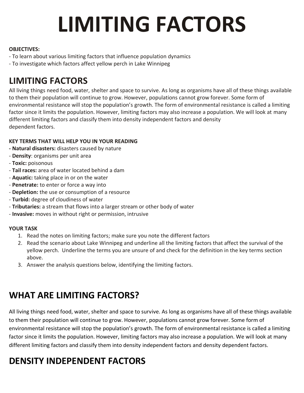 Limiting Factors Case Study