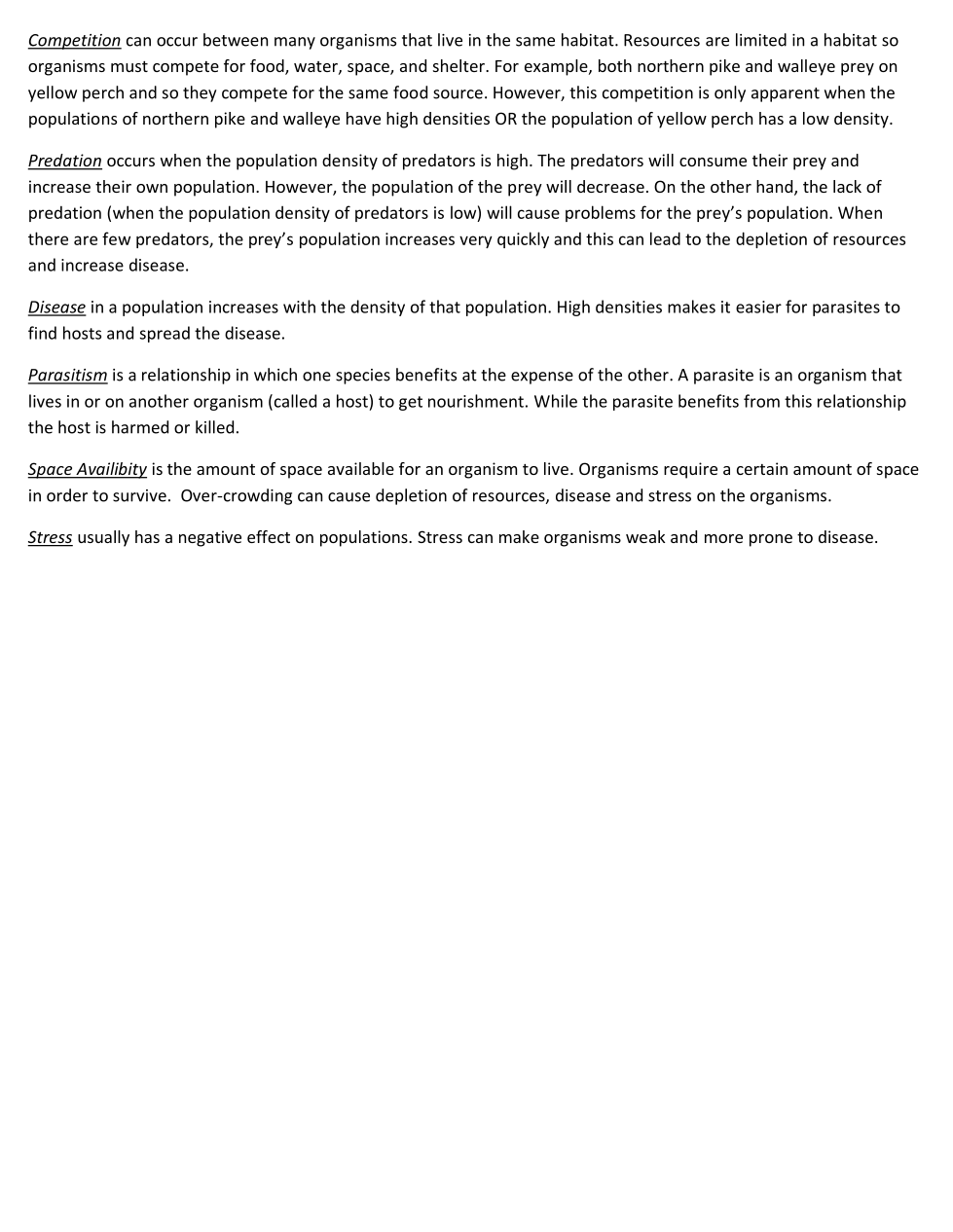Pick five density dependent factors.