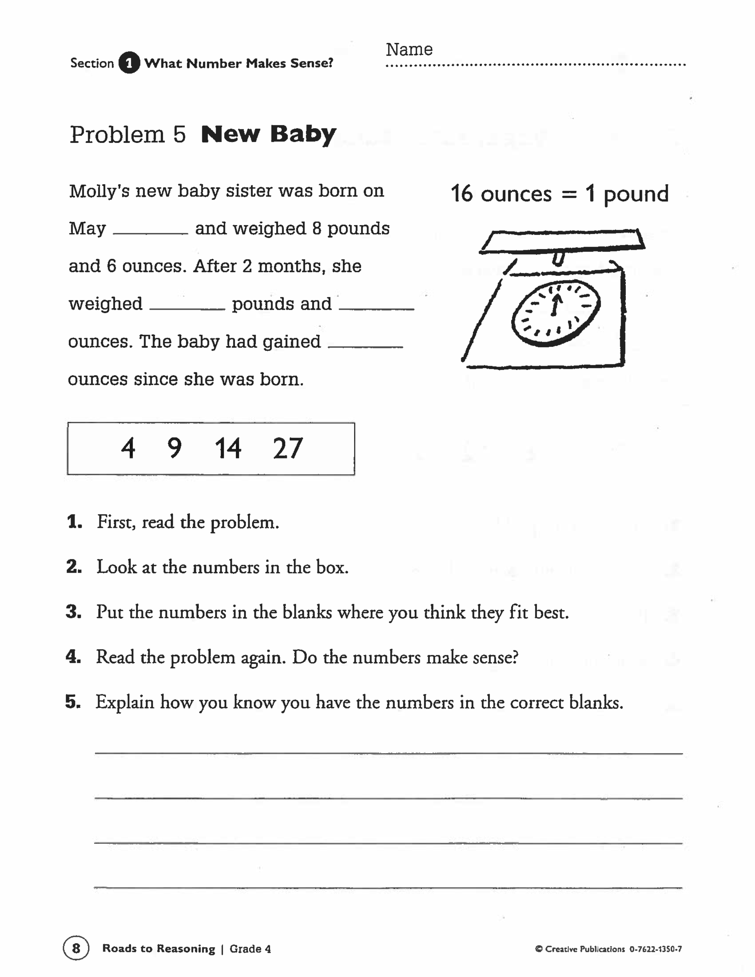 Problem 5 (New Baby) Section 1 - What Number Makes Sense?