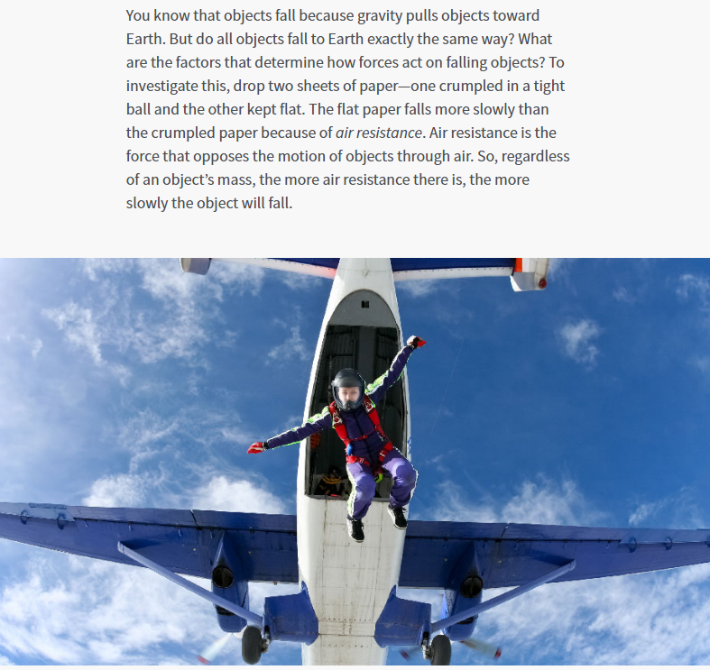 Add the correct force arrows that represent the motion of the skydiver at the various stages of their jump.