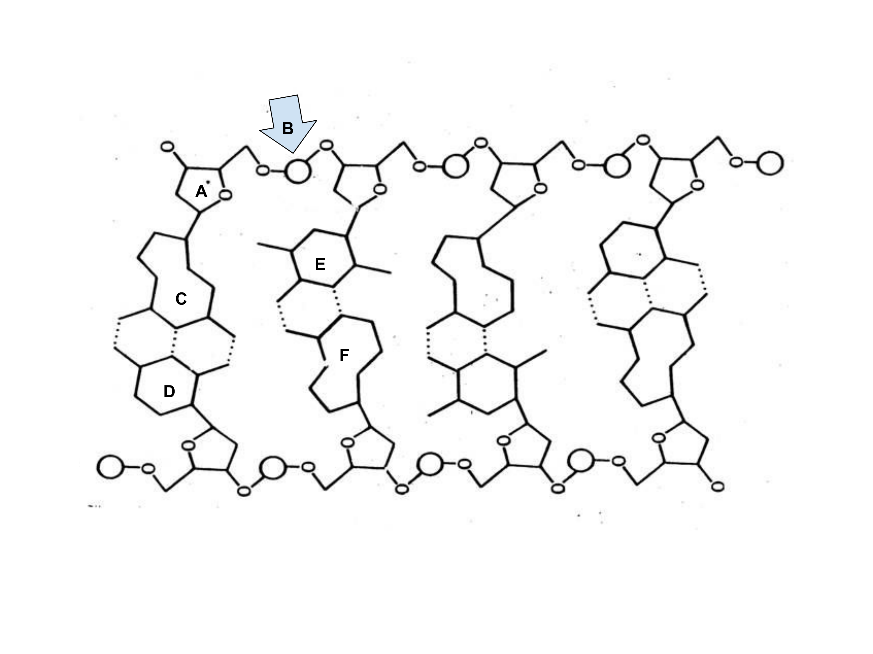 Name the part of the DNA model labeled by the "B" arrow.
