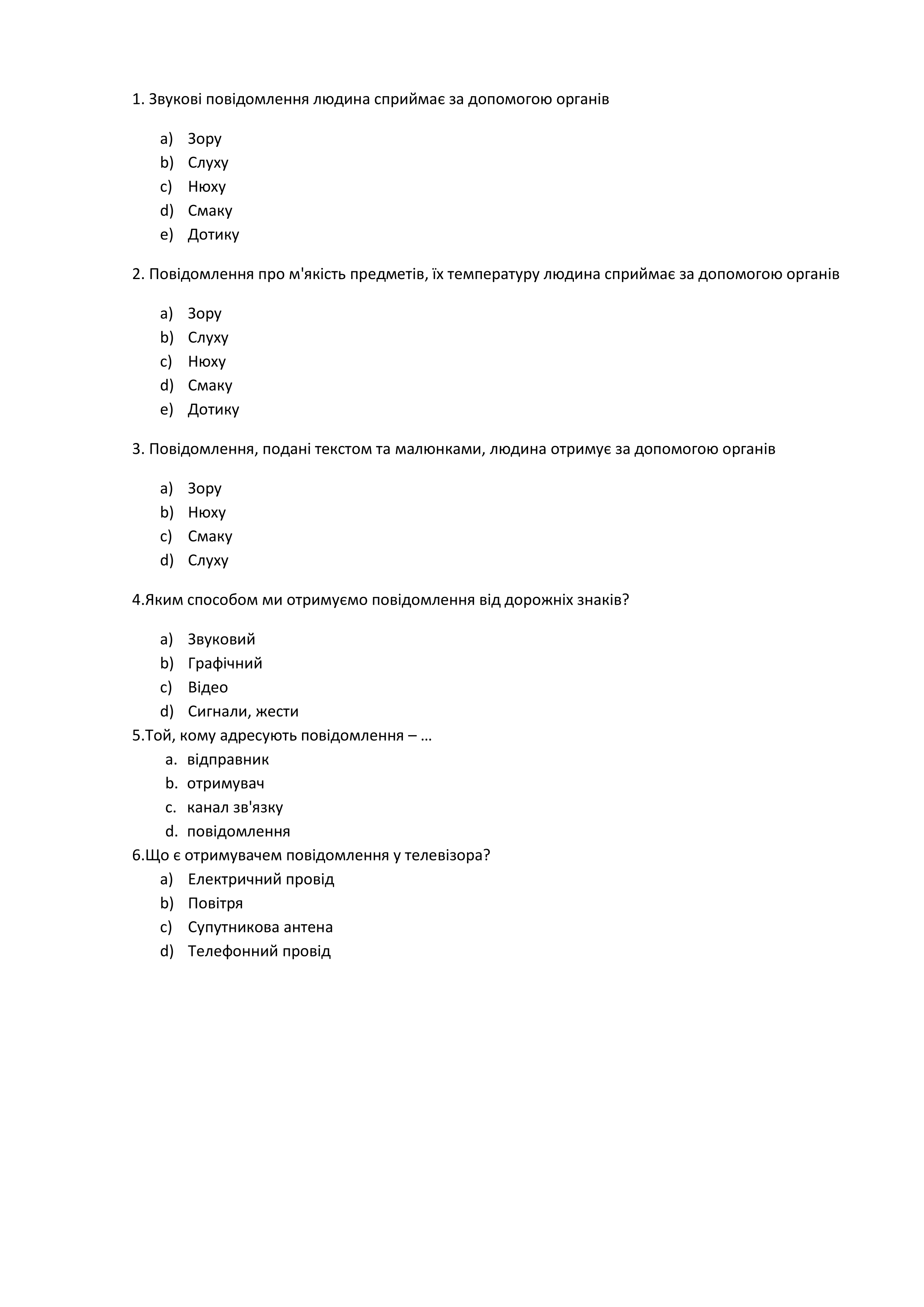 1. Звукові повідомлення людина сприймає за допомогою органів