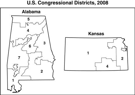 C Representatives from Kansas serve more constituents than representatives from Alabama.