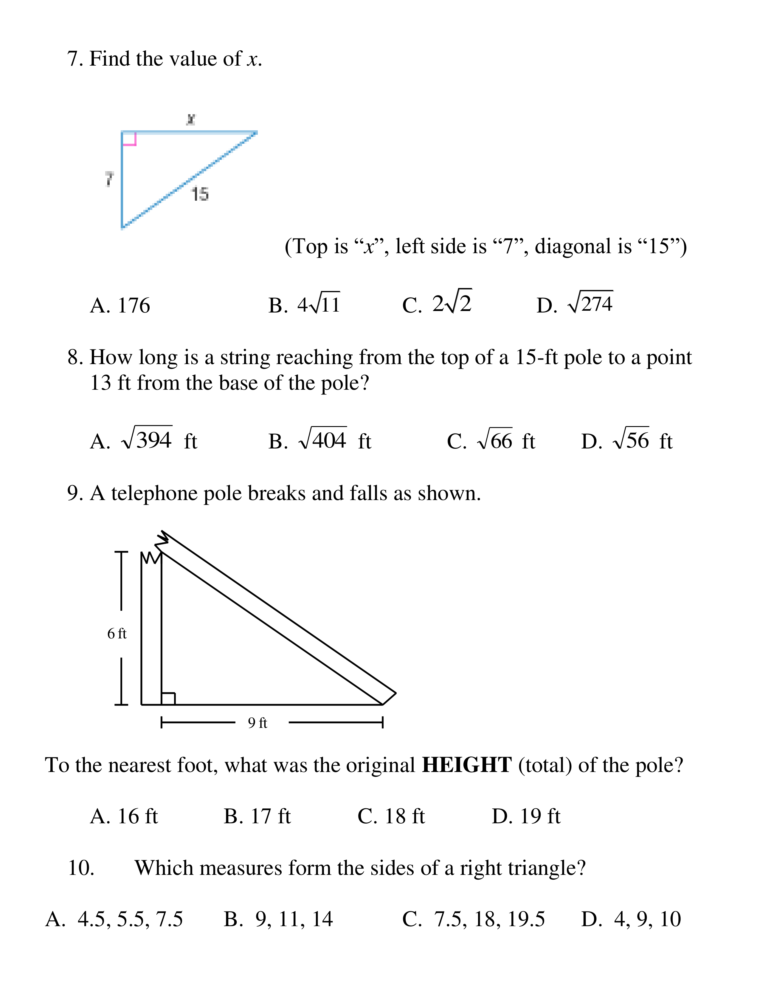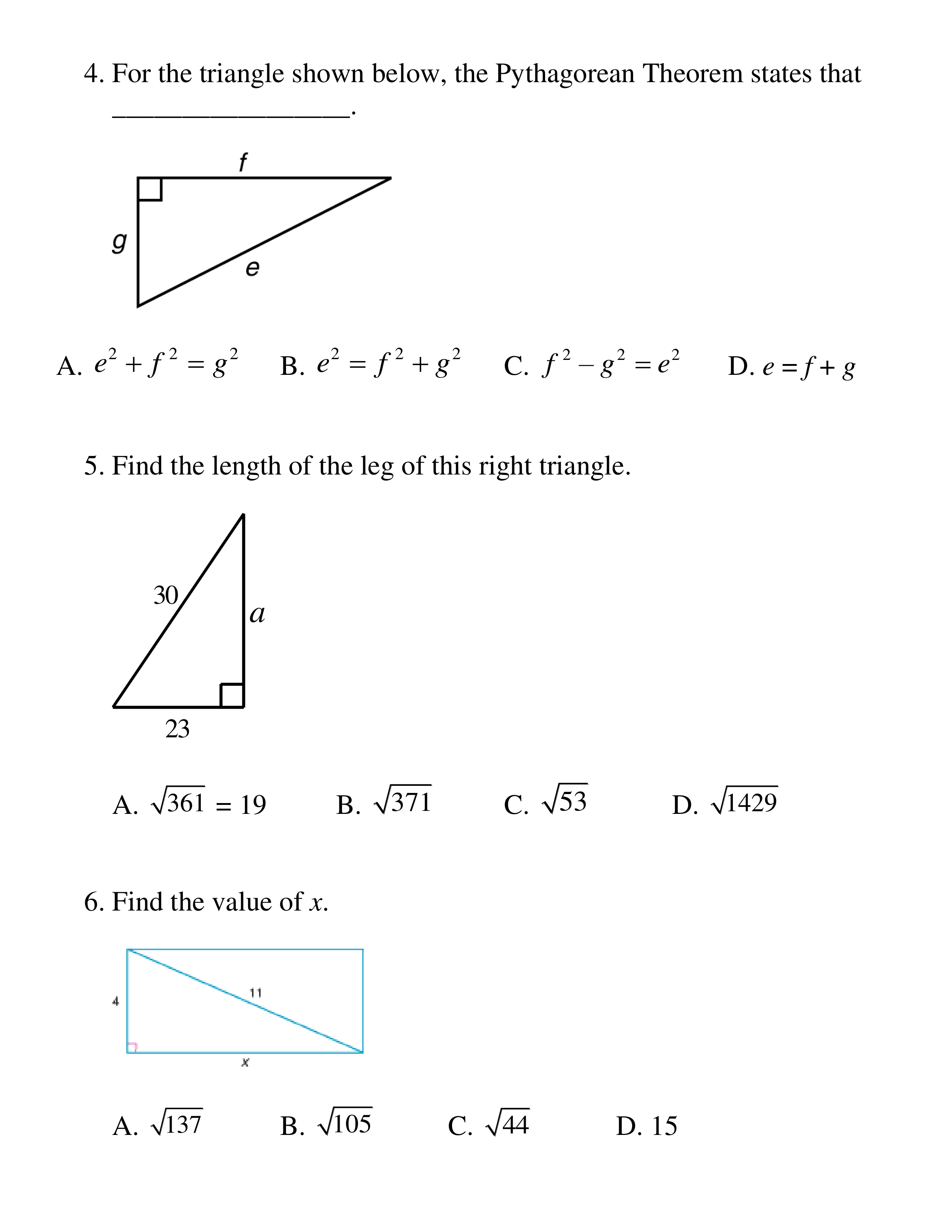 The side lengths in triangle inside the rectangle are: 4, x, and 11 is the diagonal.