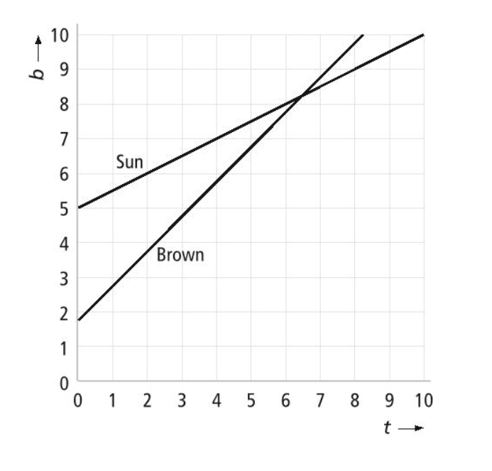 Bij zonnecentrum Sun kun je onder de zonnebank. Hoeveel je moet betalen, kun je uitrekenen met de fomule b = 0,5t + 5. Hierin is b bet bedrag in euro's en t de tijd in minuten.Hoeveel moet je betalen als je 16 minuten onder de zonnebank gaat?