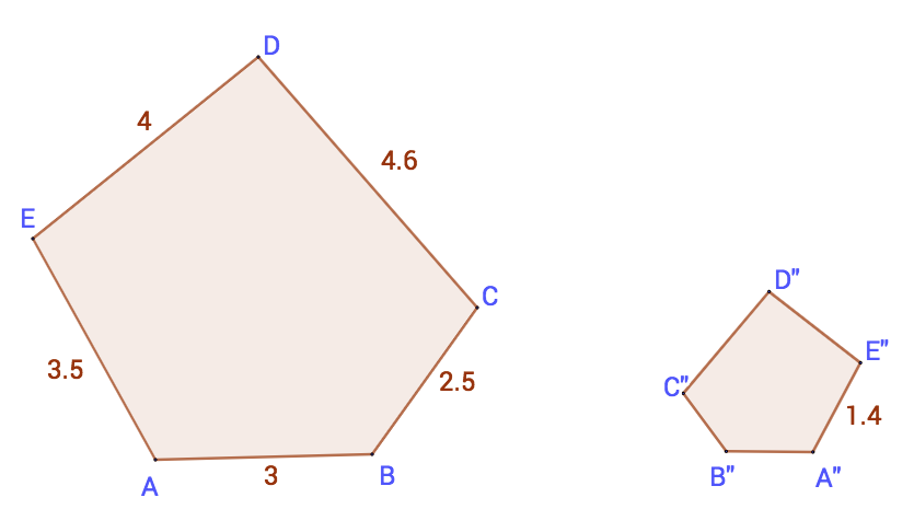 Pentagon ABCDE ~ pentagon A''B''C''D''E''. What is the scale factor of ABCDE to A''B''C''D''E''?