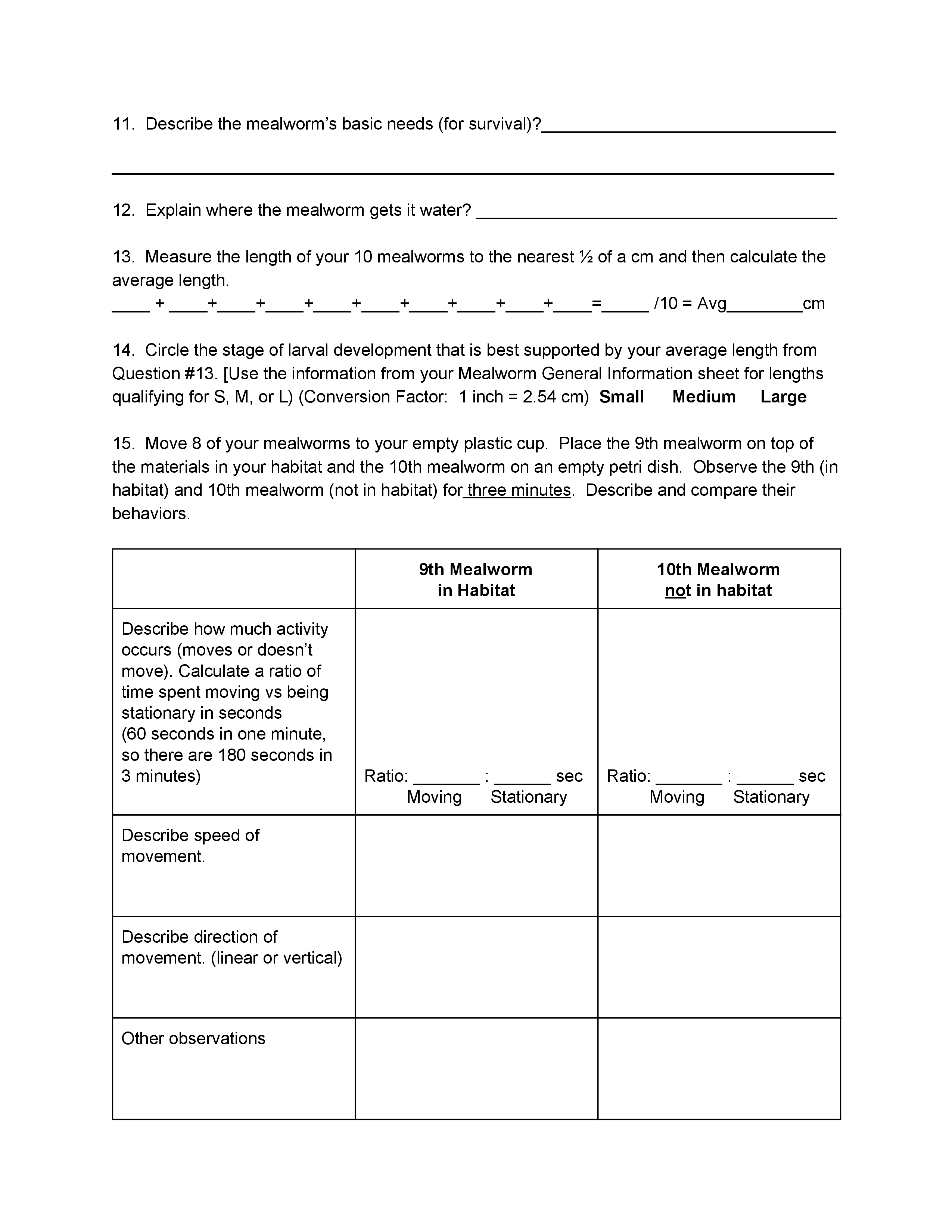 #13 Calculating the average length of your mealworms. Be sure to measure in cm. Estimate length to the nearest 1/10 of a centimeter.