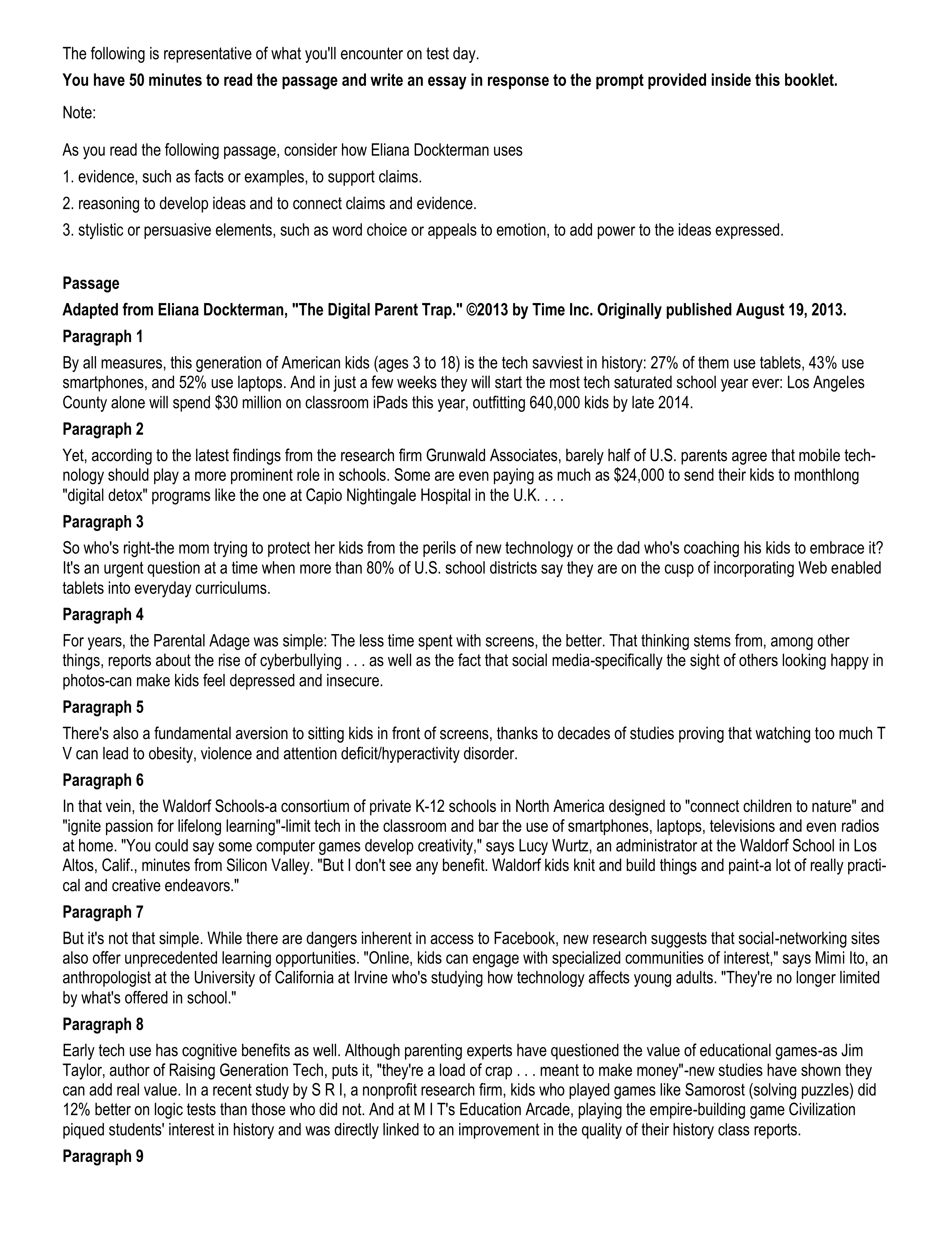 Practice SAT Essay Prompt
