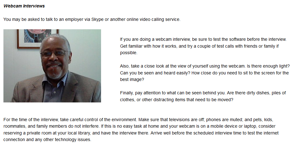 Based on the excerpt above, what advice would you give others about webcam interviews?