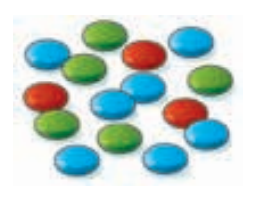 Look at the candy-covered chocolates below. Choose the best explanation of the following ratio: 5:15