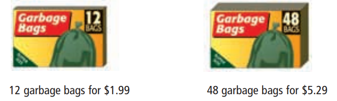 Which is a better buy, 12 bags for $1.99 or 48 bags for $5.29?