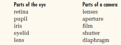 In the image found above, match each part of the eye with the part of the camera that performs the same or similar function in the box below. (Be Sure to select a text size larger then 3 pt.)