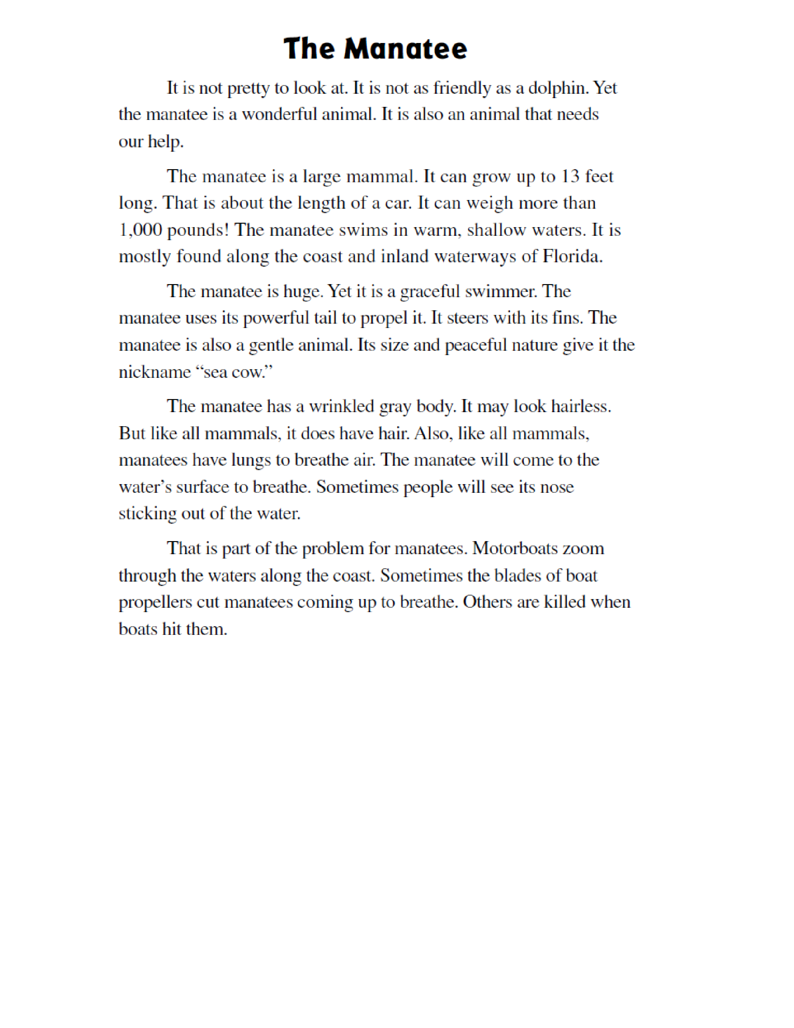 Why does the author say the manatee needs our help? Use details from the text to support your answer.