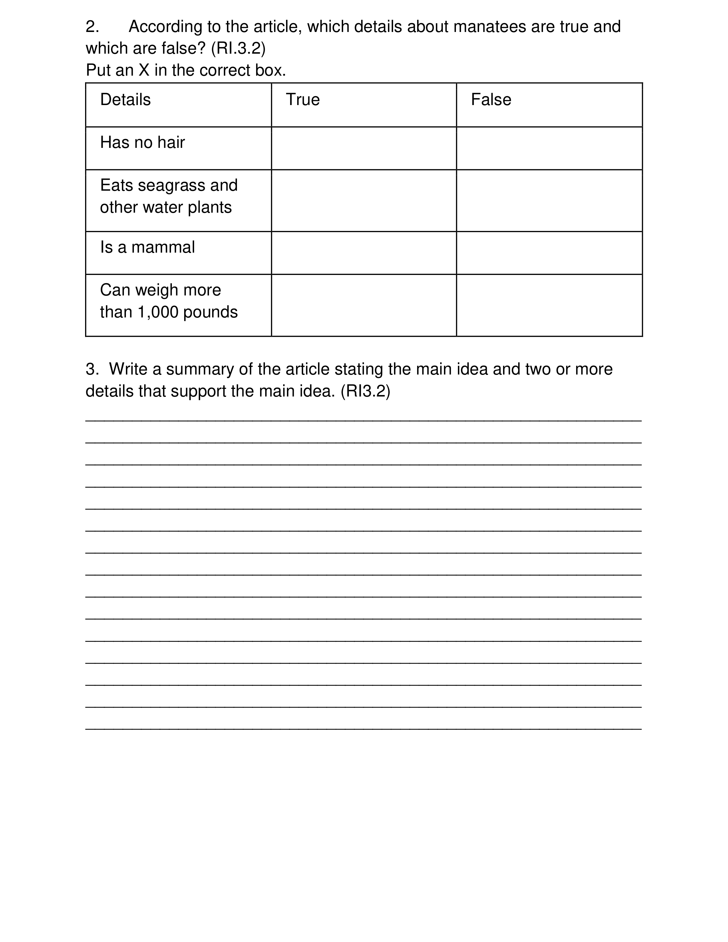 According to the article, which details about manatees are true and which are false?Manatees have no hair.