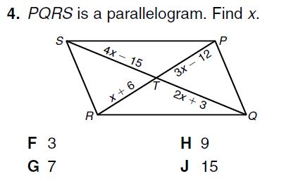 On a seperate piece of paper, plot the following points: P (2, 2), Q (1, -3), R (-4, 2), S (-3, 7); Show that the figure is a parallelogram using Theorem 6-3-2, opposite sides are congruent.