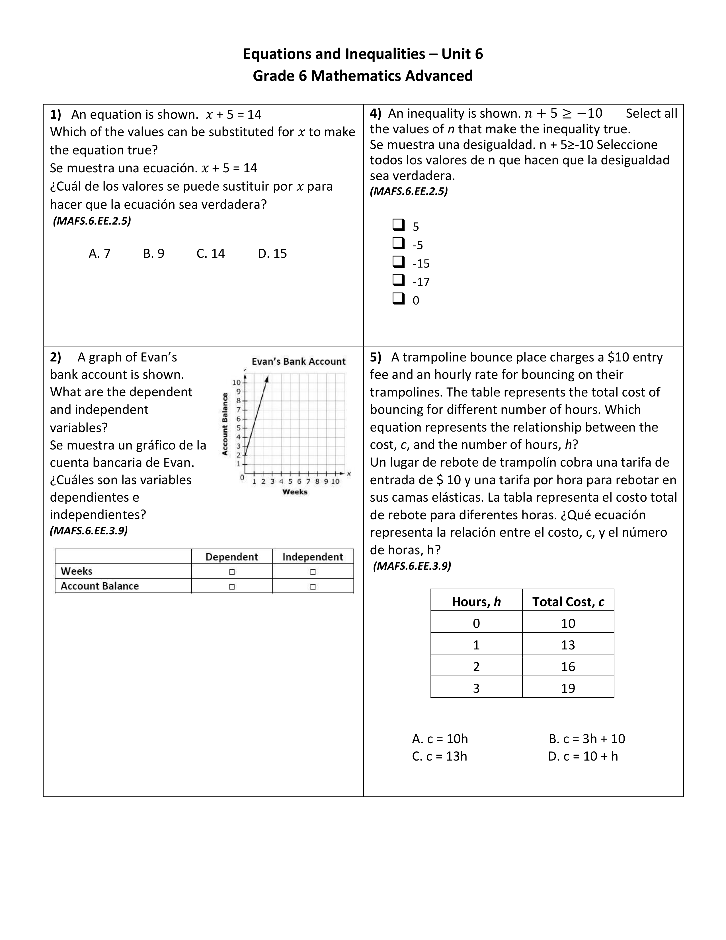 Be sure you are writing an inequality to represent this situation. Remember inequalities have signs such, but not limited to, < and >.Asegúrese de escribir una desigualdad para representar esta situación. Recuerde que las desigualdades tienen signos de este tipo, pero no se limitan a <y>.