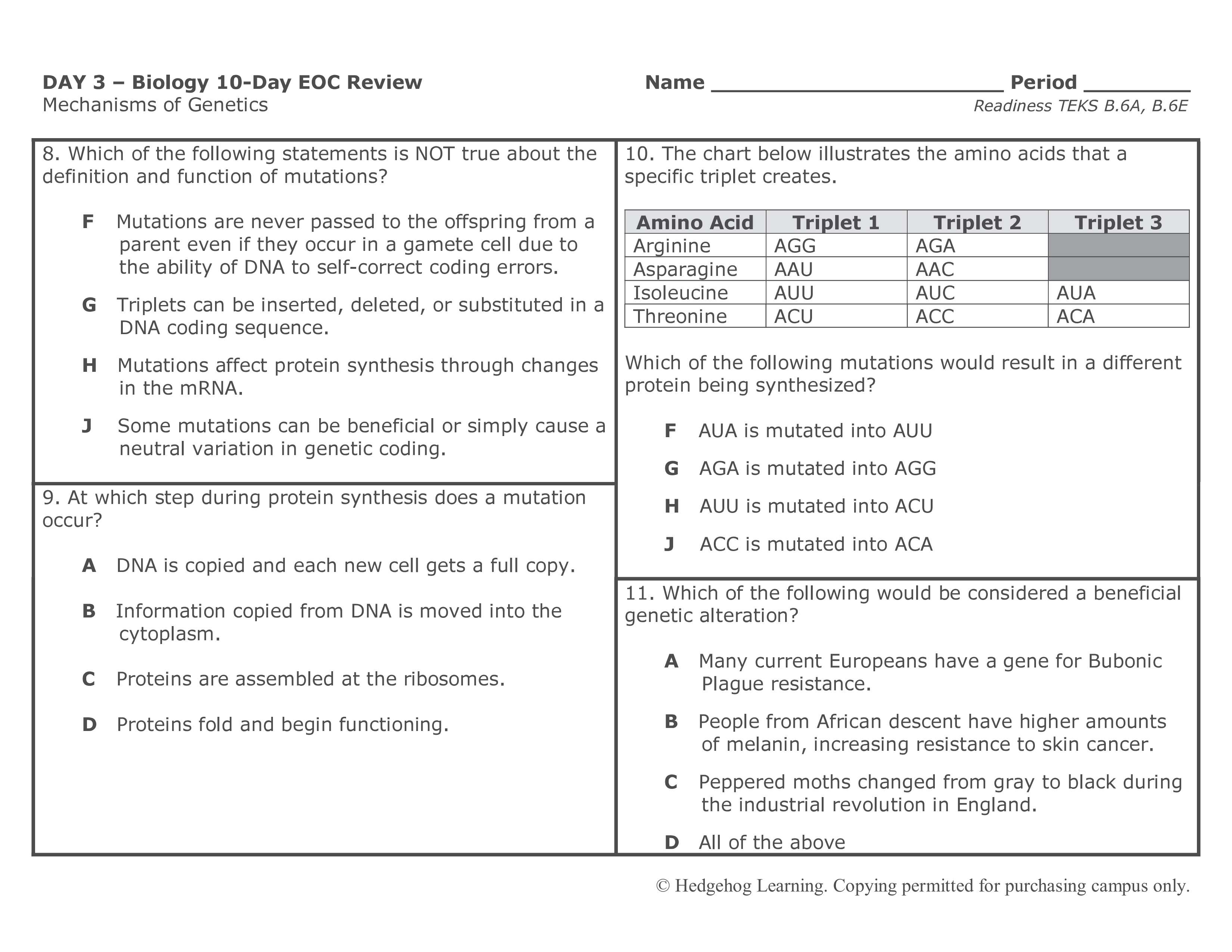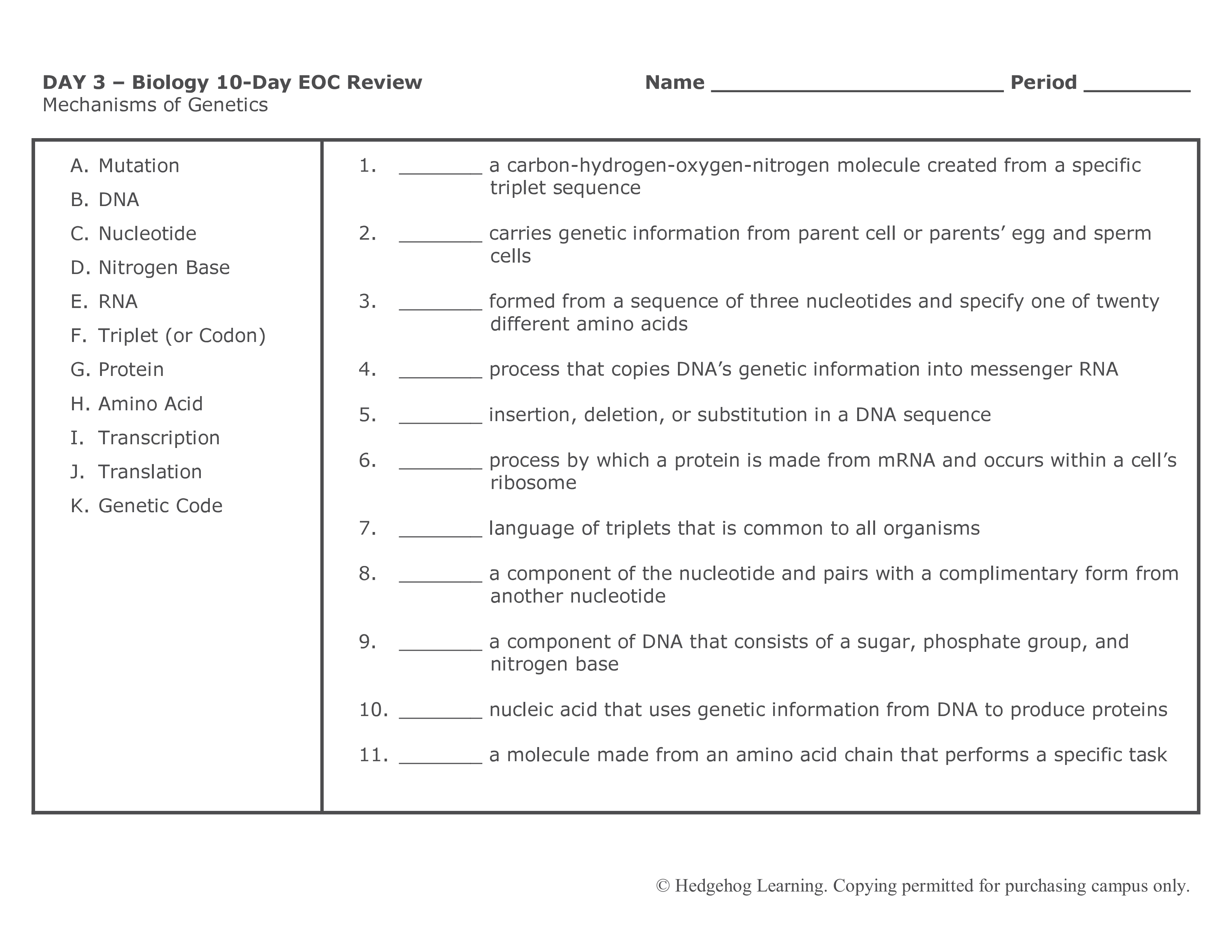 In the genetic structure below, which component changes when coding for different triplets and amino acids?