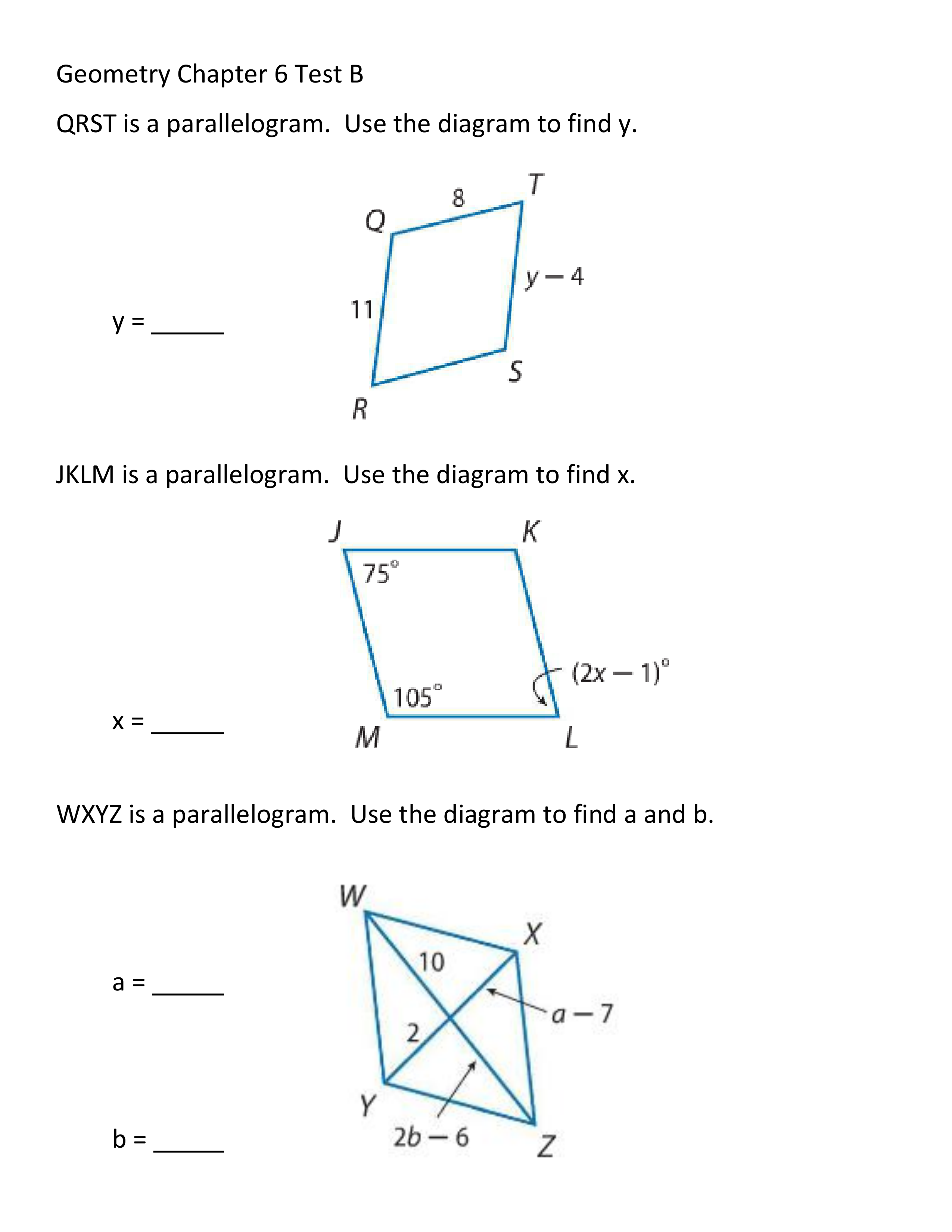 Geometry Chapter 6 Test B