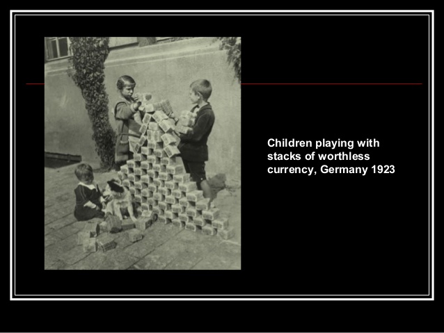 Look at the picture above. Explain what is going on in Germany for the children to be playing with money.