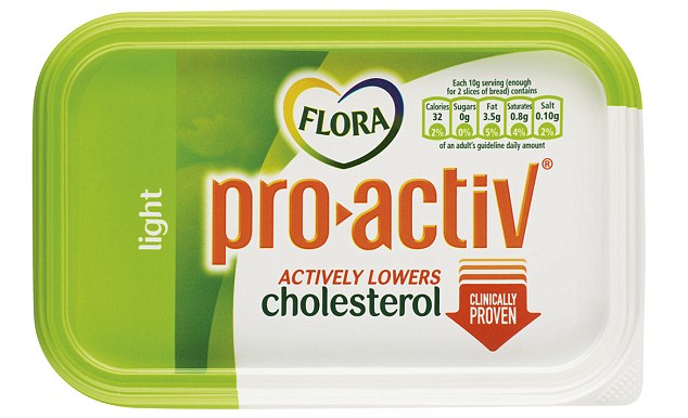 Looking at the image above of the Flora Pro-activ margarine, identify what two functional features this food item provides to consumers?