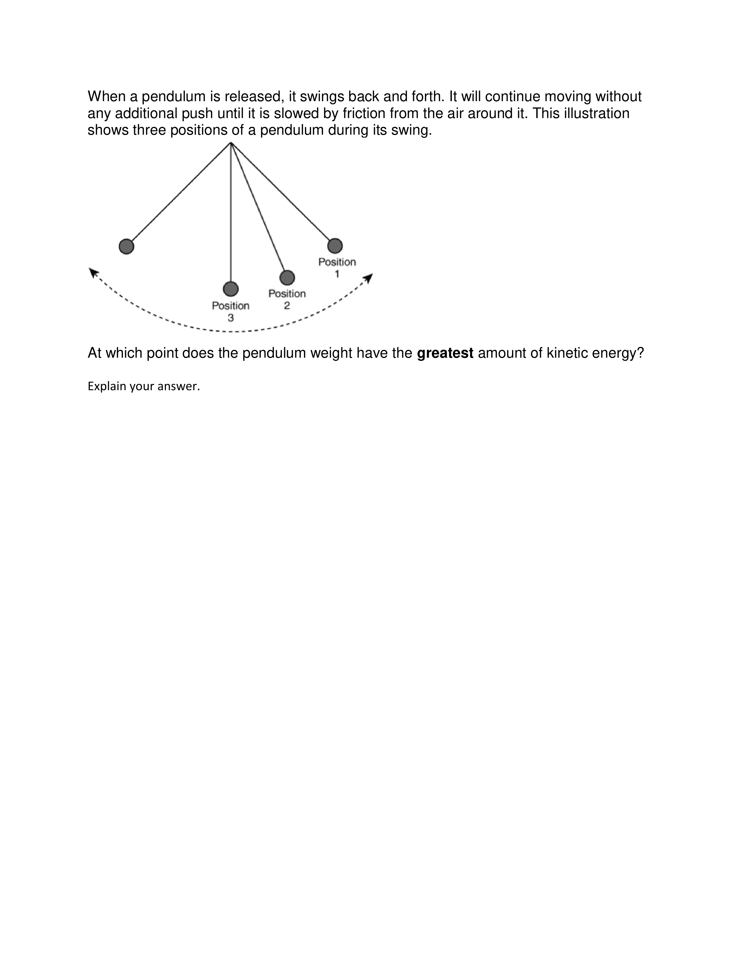 At which point does the pendulum weight have the greatest amount of kinetic energy?