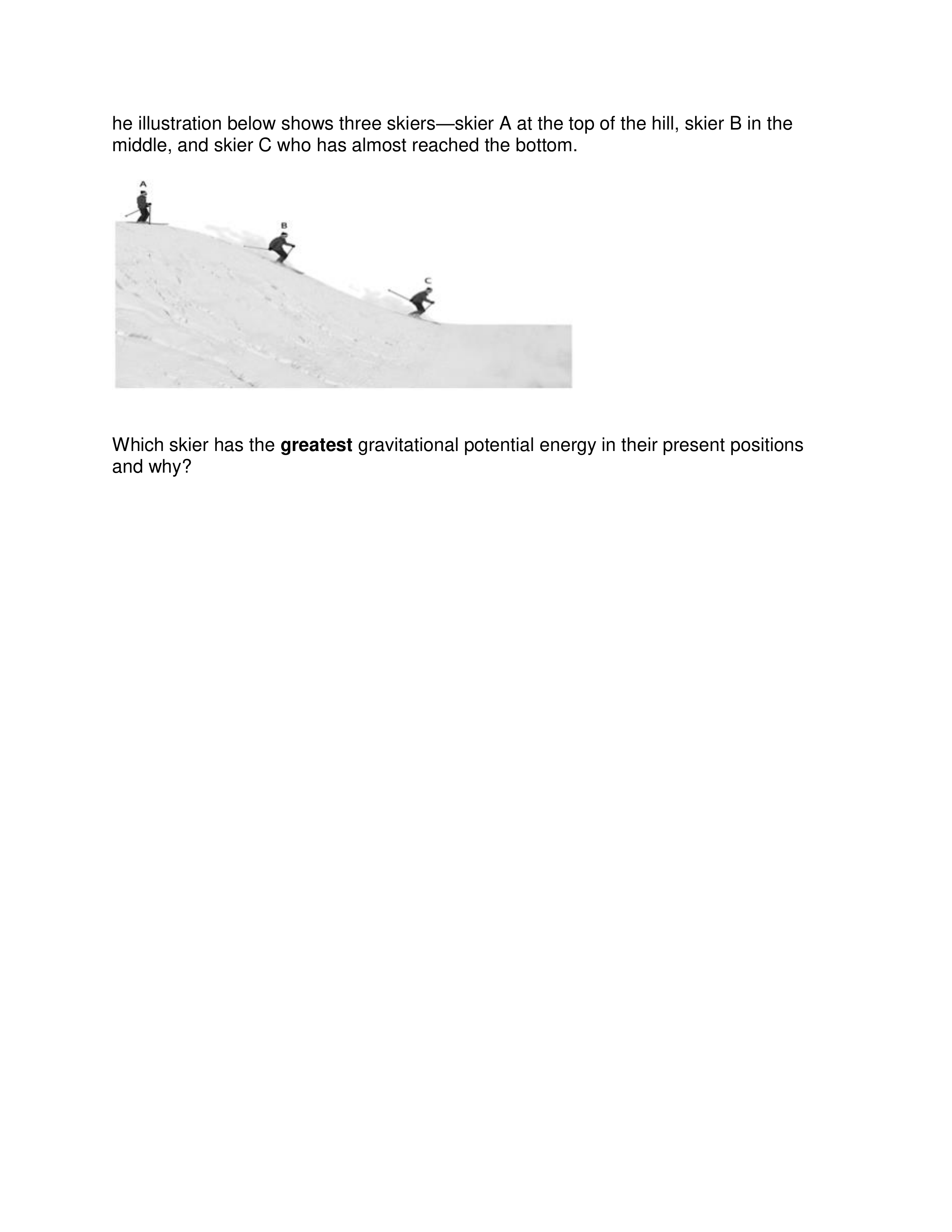 Which skier has the greatest gravitational potential energy in their present positions and why?