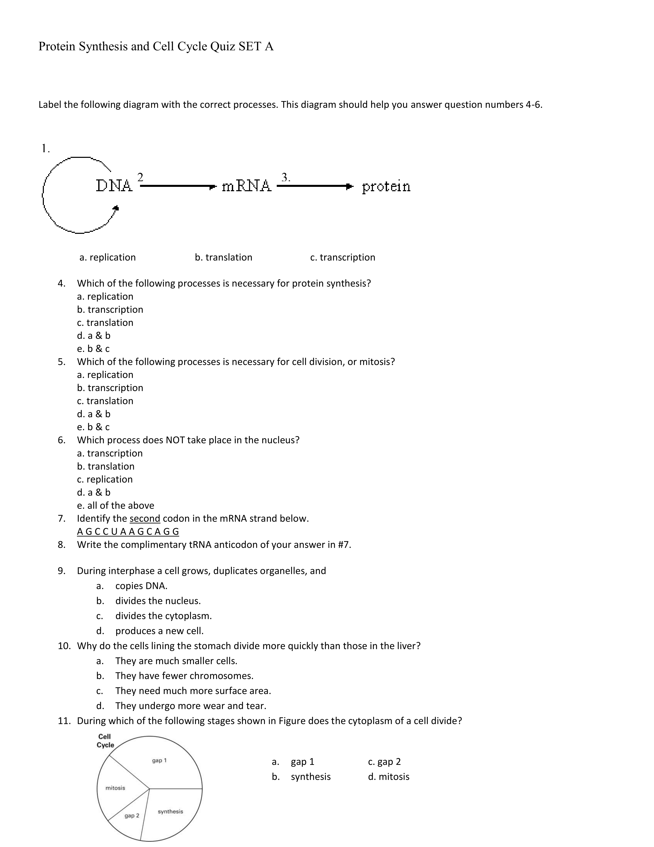 PROTEIN SYNTHESIS AND CELL CYCLE SET A