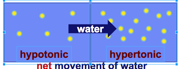 In osmosis, water always moves toward the ____ solution: that is, toward the solution with the ____ solute concentration.