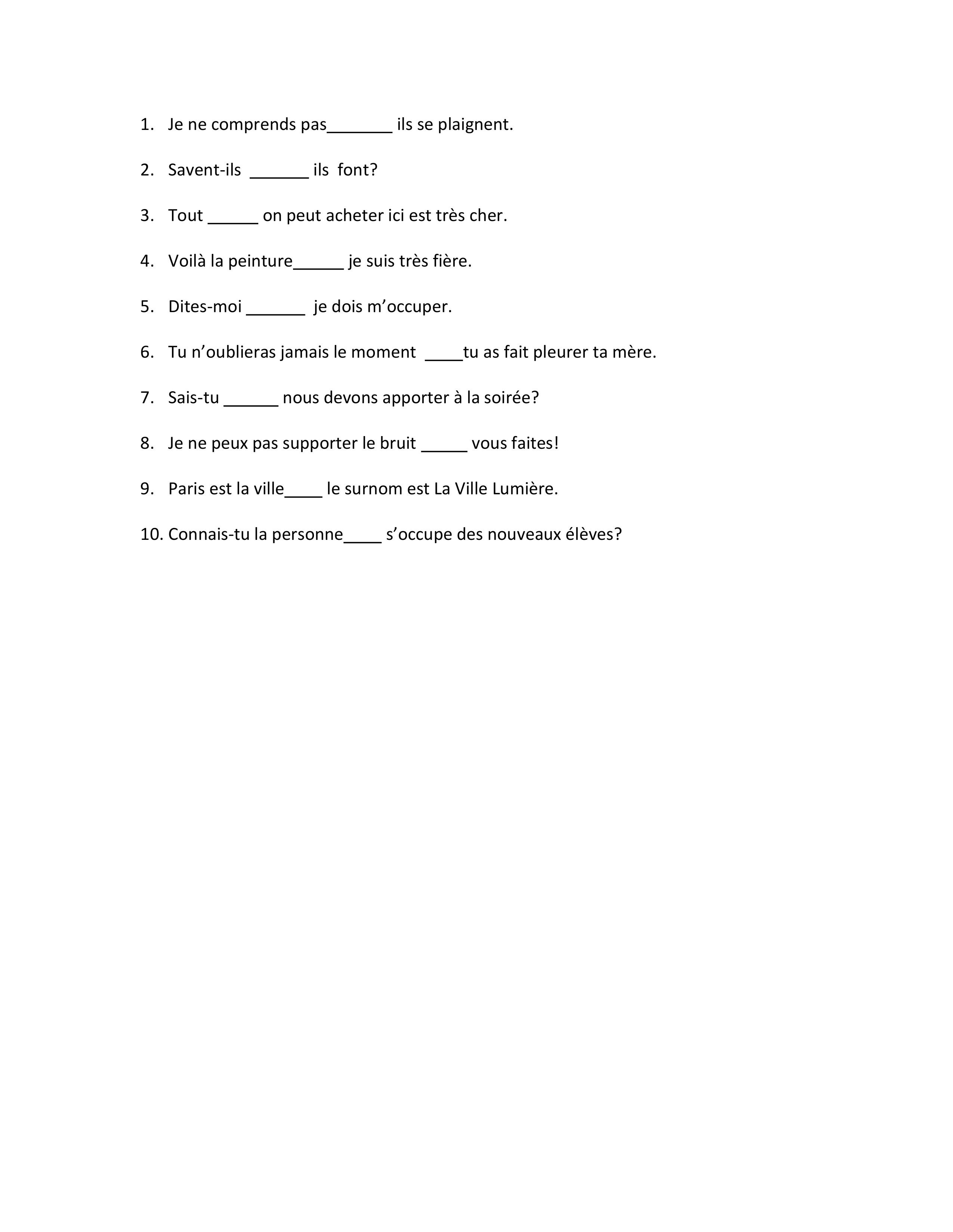 Pour l'exercice suivante, choissisez entre que/qu', qui, où, dont, ce qu'/que, ce qui, ce dont.