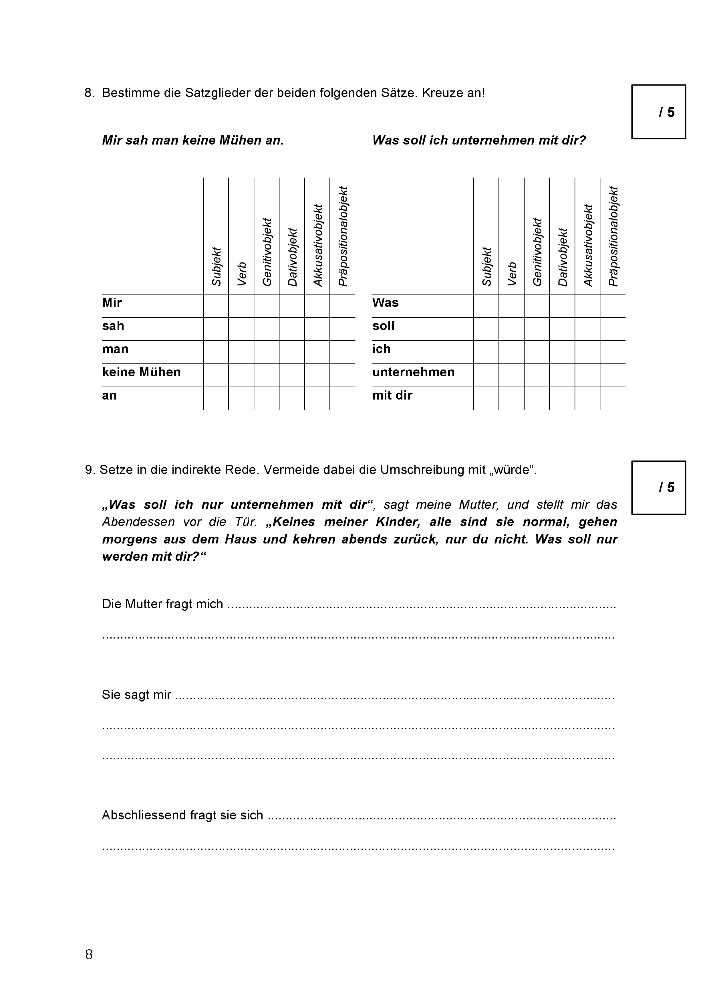 Setze in die indirekte Rede. Vermeide dabei die Umschreibung mit „würde“.