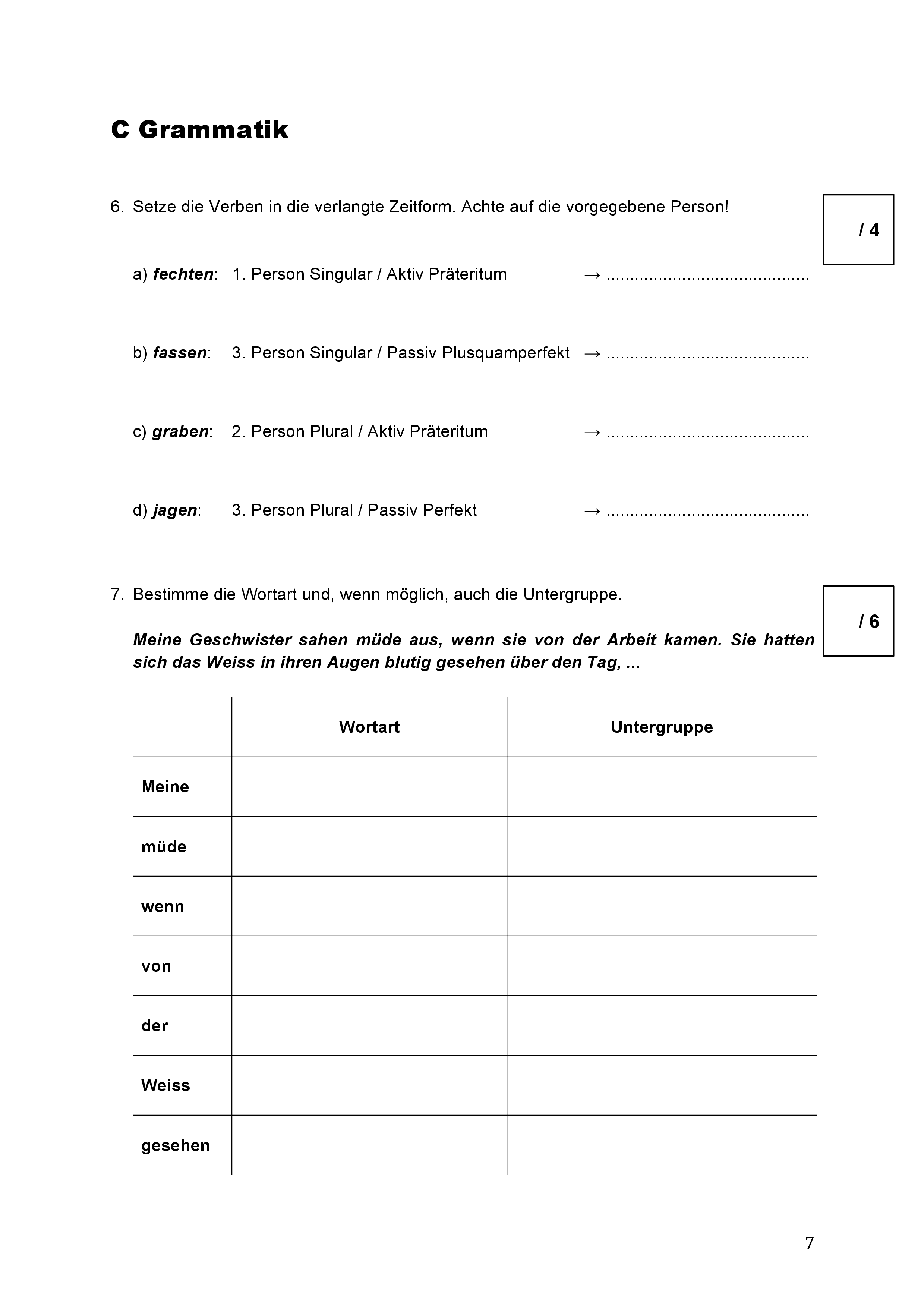 Setze die Verben in die verlangte Zeitform. Achte auf die vorgegebene Person!fechten: 1. Person Singular / Aktiv Präteritum
