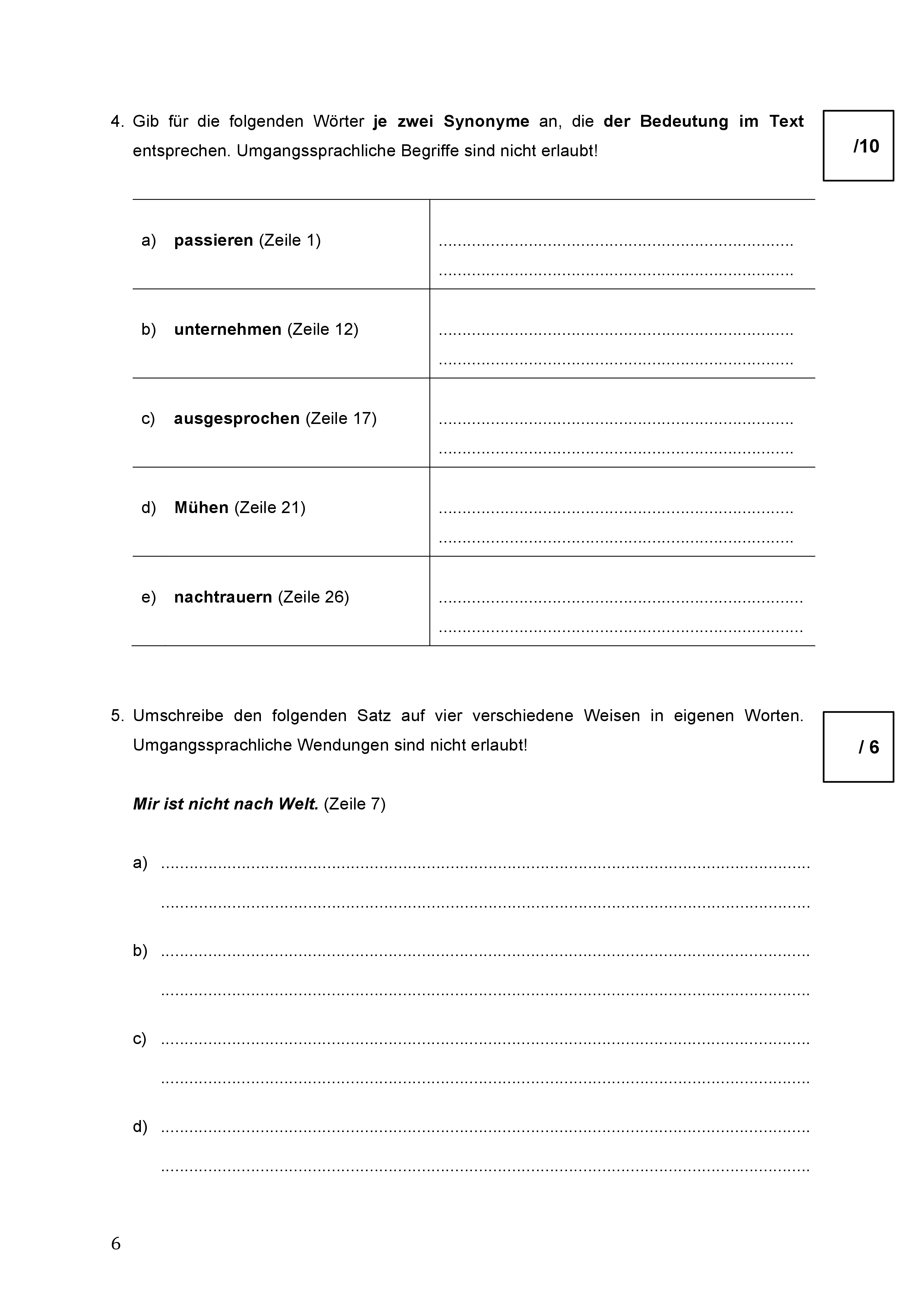 Umschreibe den folgenden Satz auf vier verschiedene Weisen in eigenen Worten. Umgangssprachliche Wendungen sind nicht erlaubt!