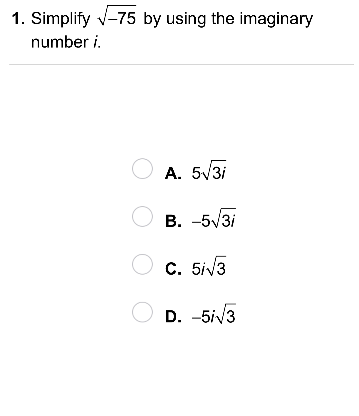 Problem 1 Got It? How do you write the number by using the imaginary unit i ?