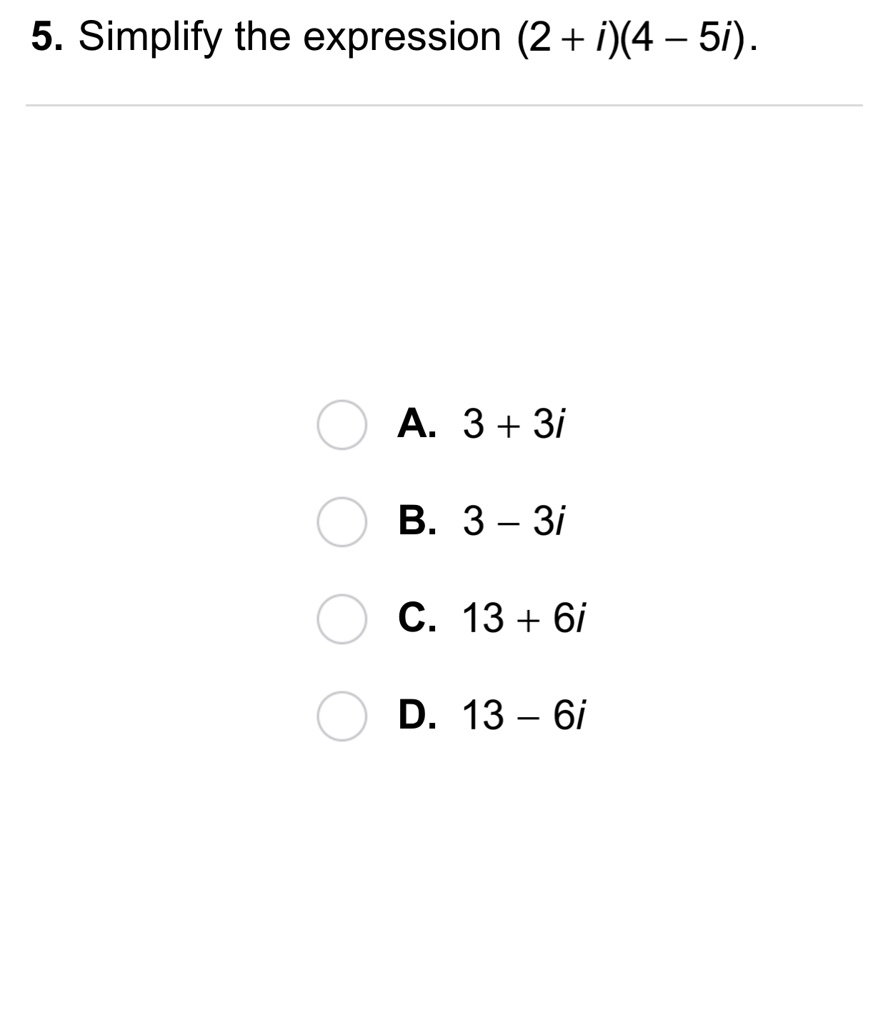 Problem 2 Got It? Graph the complex numbers on the complex plane. Use the color indicated for each number. Include relevant graph detail: label axes, and indicate units and scale on both axes.