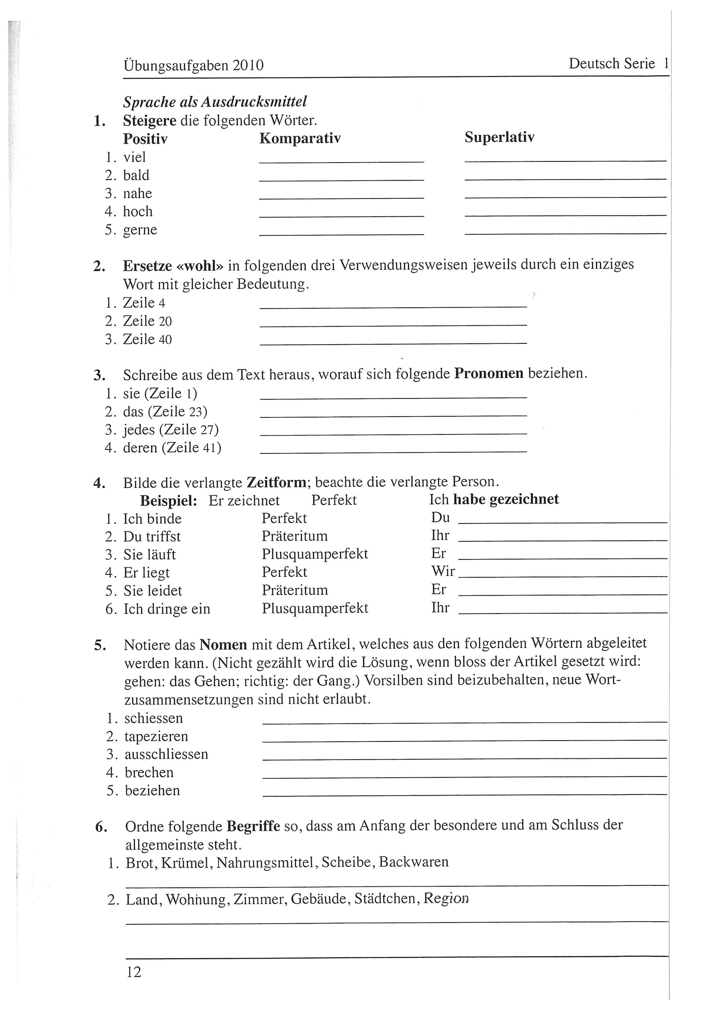 Bilde die verlangte Zeitform; beachte die verlangte Person!