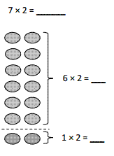 You can find the answer for 6 x 2 by multiplying 5 x 2 then adding 2 more.