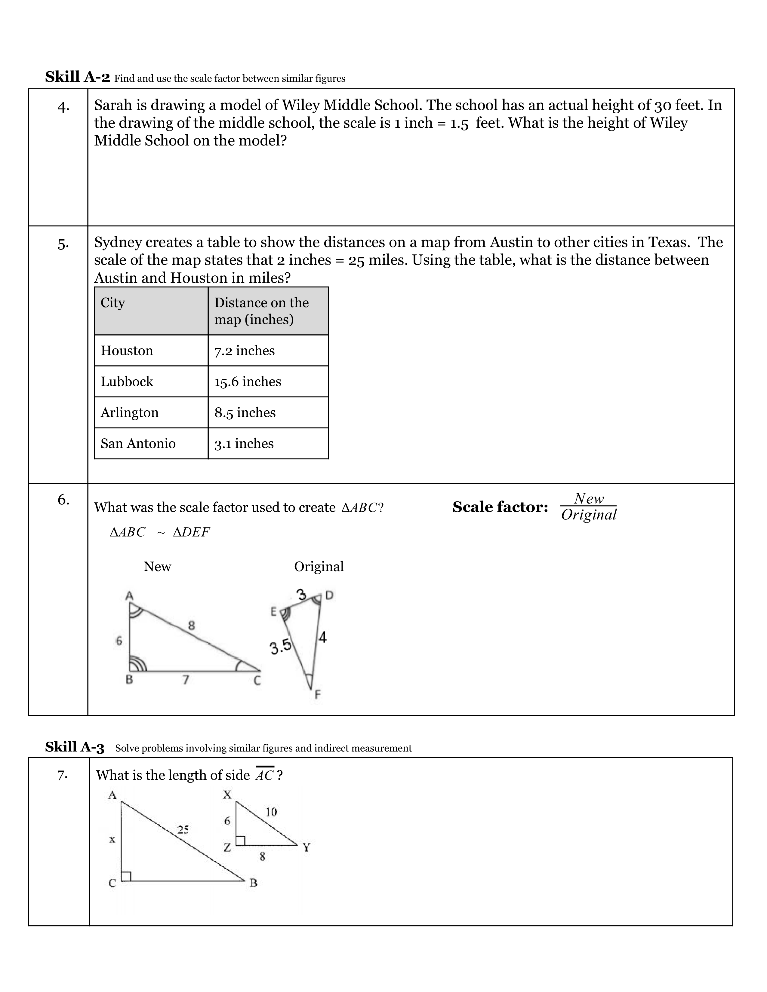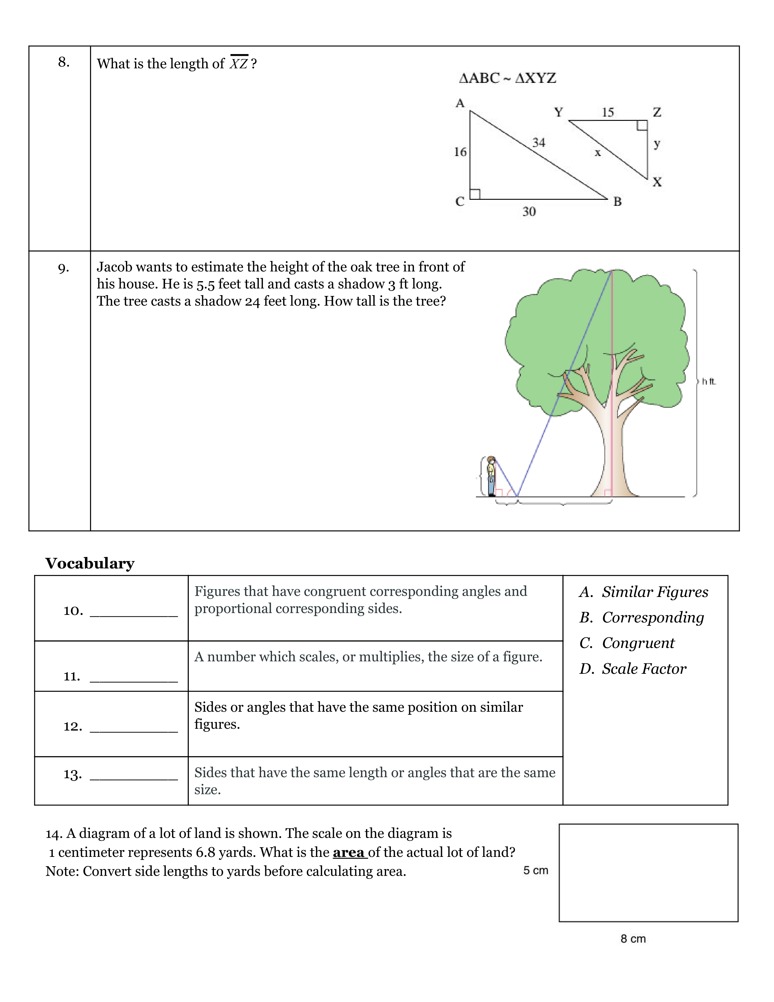 Students review similarity between similar geometric figures, solve for missing measurements between similar figures, and use scale models.