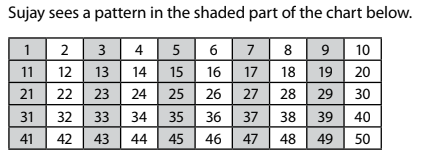 If Sujay continues the chart, what will the next three shaded numbers be?