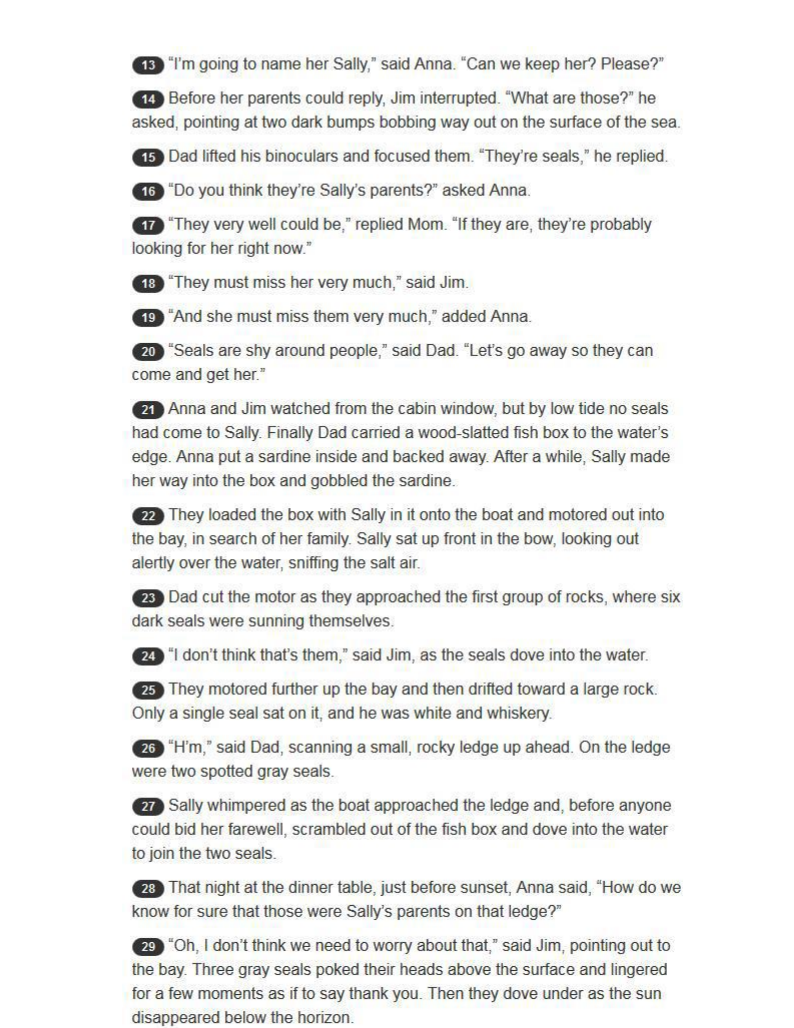 Imagine what the story would be like from the seal's point of view. Consider how it would be different from the story you read. Rewrite the story from the seal's point of view.