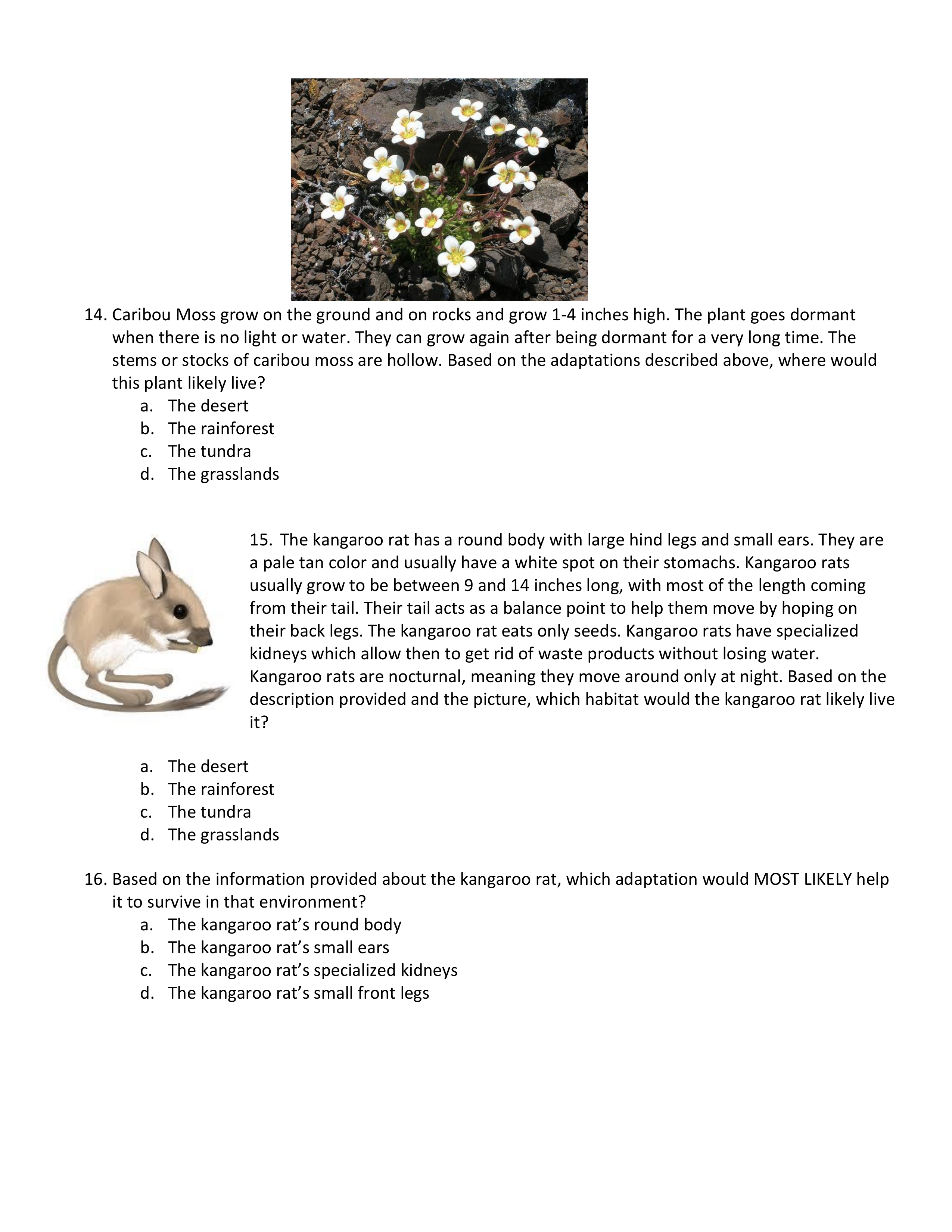 Based on the information provided about Kangaroo rats, which adaptation would Most Likely help it to survive in that environment?
