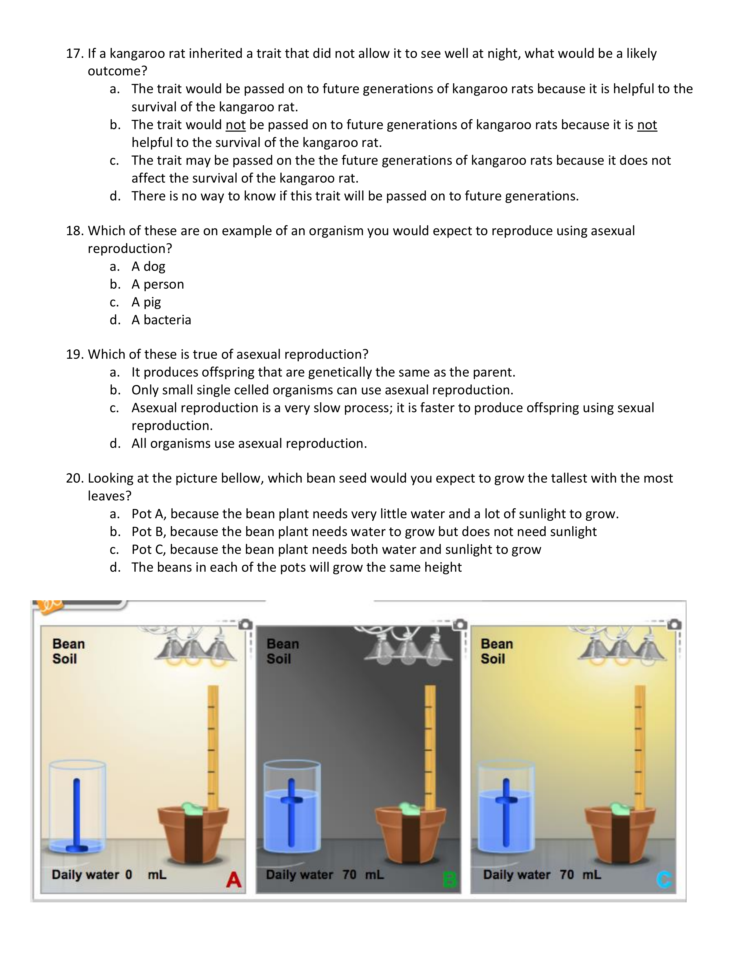 Growth and Development End of Unit quiz