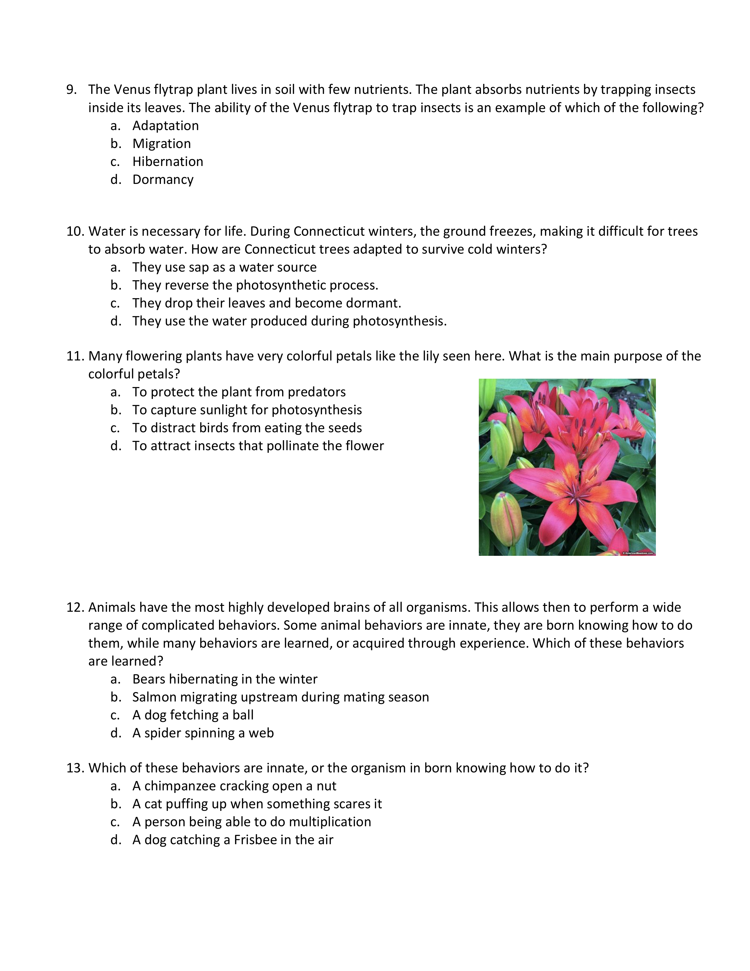 Water is necessary for life. During Connecticut winters, the ground freezes, making it difficult for trees to absorb water. How are trees adapted to survive cold winters?