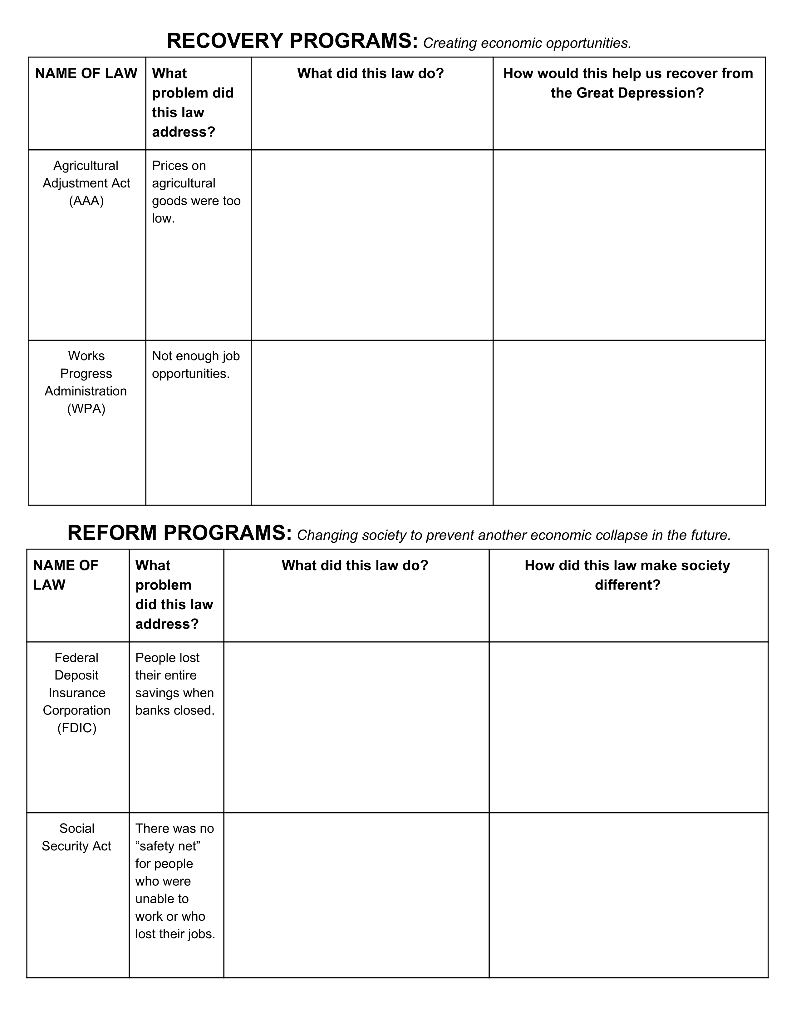 REFORM PROGRAMS: Changing society to prevent another economic collapse in the future.