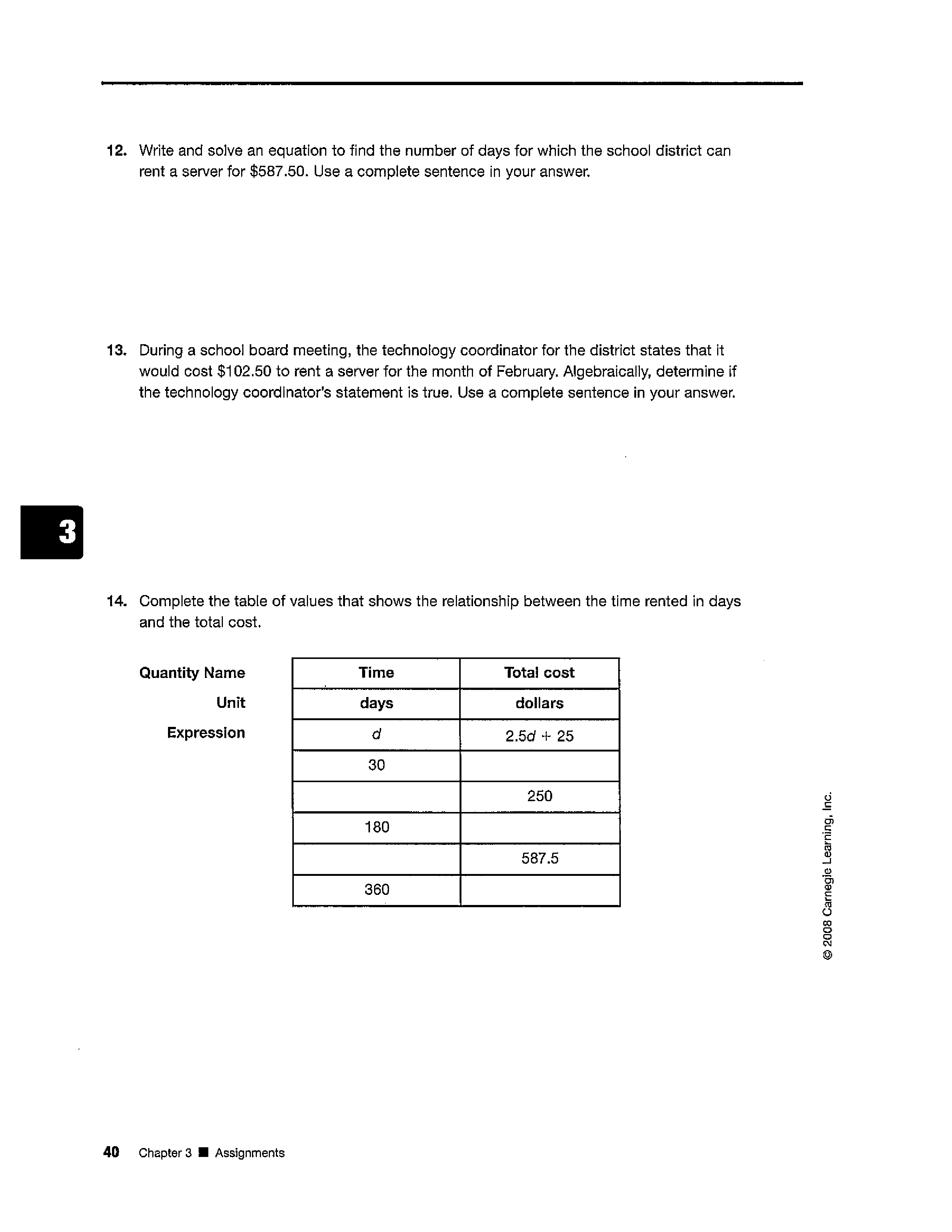 Write an equation that would help you find out how many days you could rent a server for $587.50 (Do not solve it...yet!)