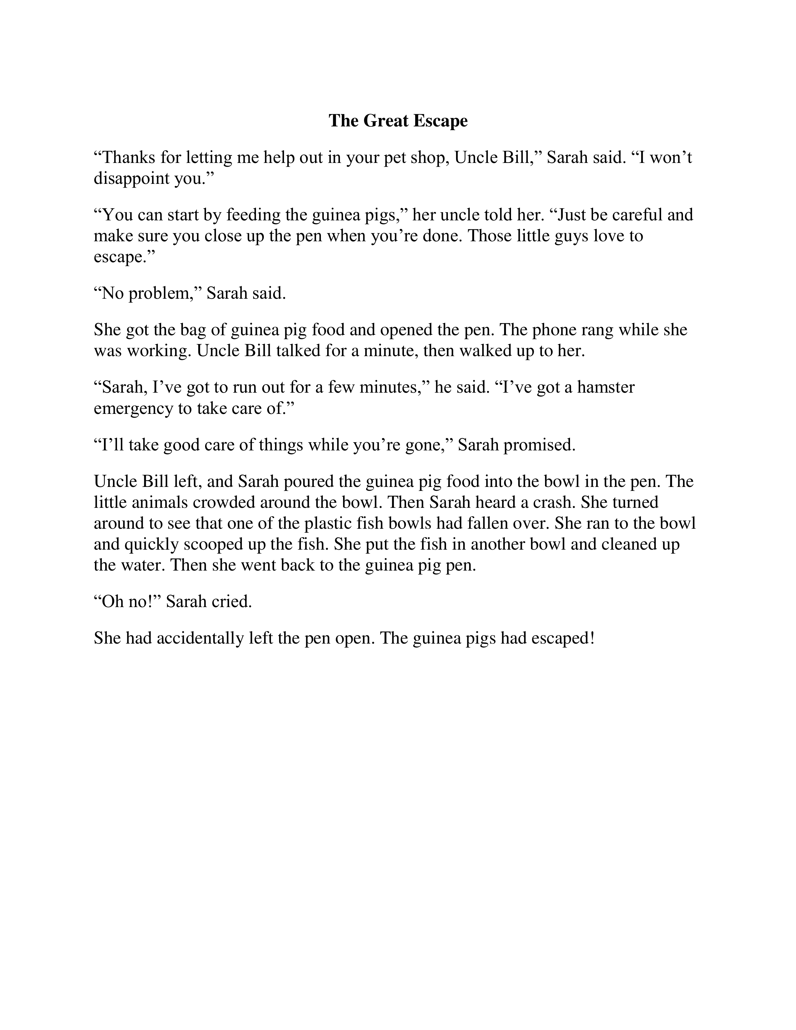 This is from a unit to prepare students for MCAS/PARCC where they are asked to write an ending to a narrative story.